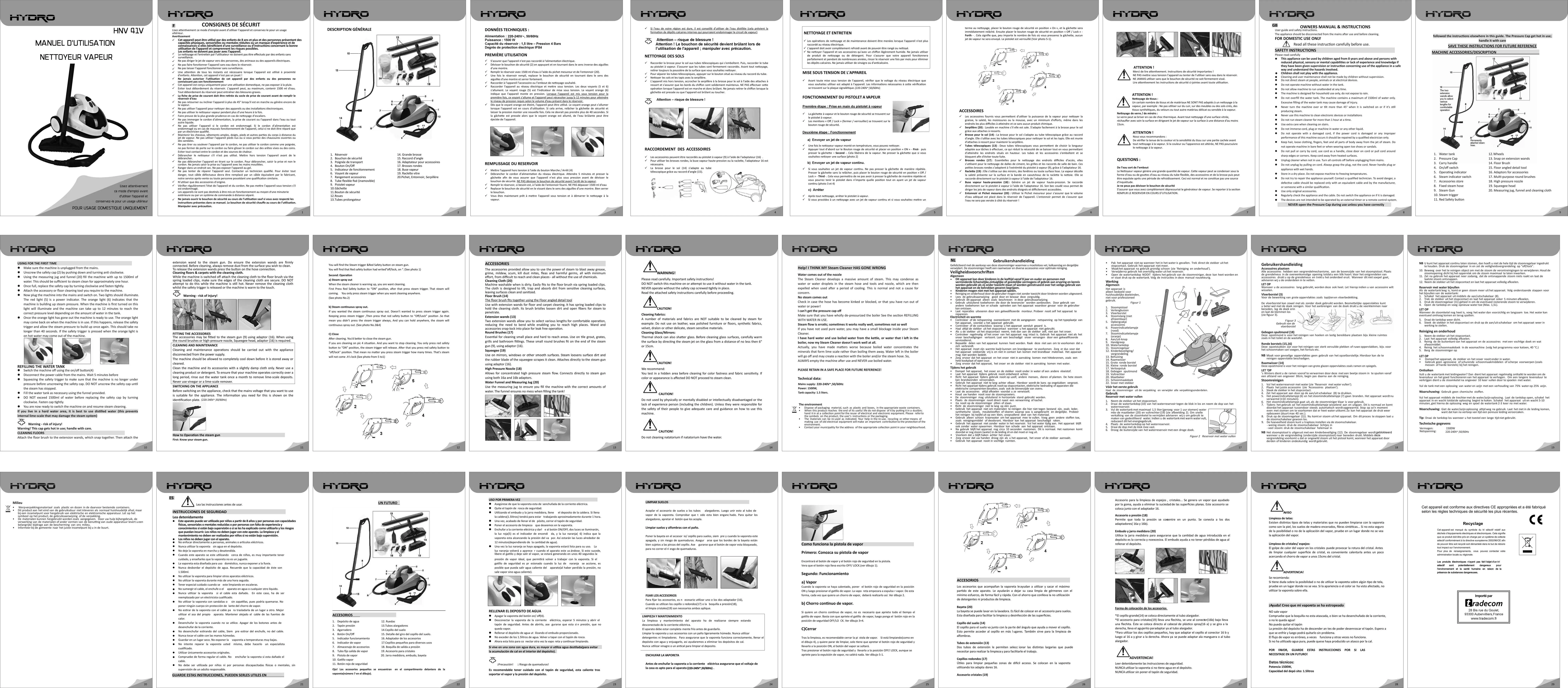 HNV41V - Aspirateur HYDRO - Notice d'utilisation et mode d'emploi gratuit