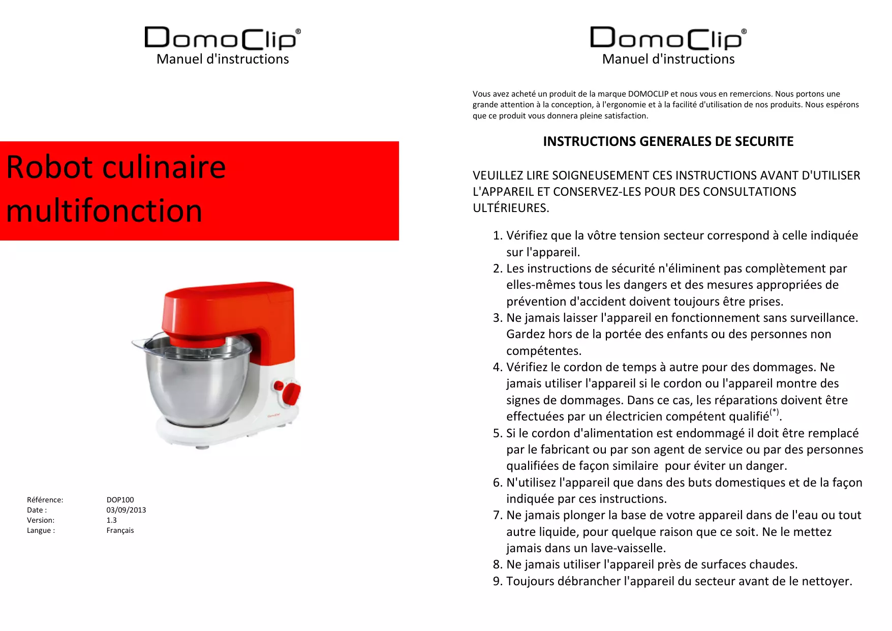 DOP100ROUGE - Robot culinaire DOMOCLIP - Notice d'utilisation et mode d'emploi gratuit
