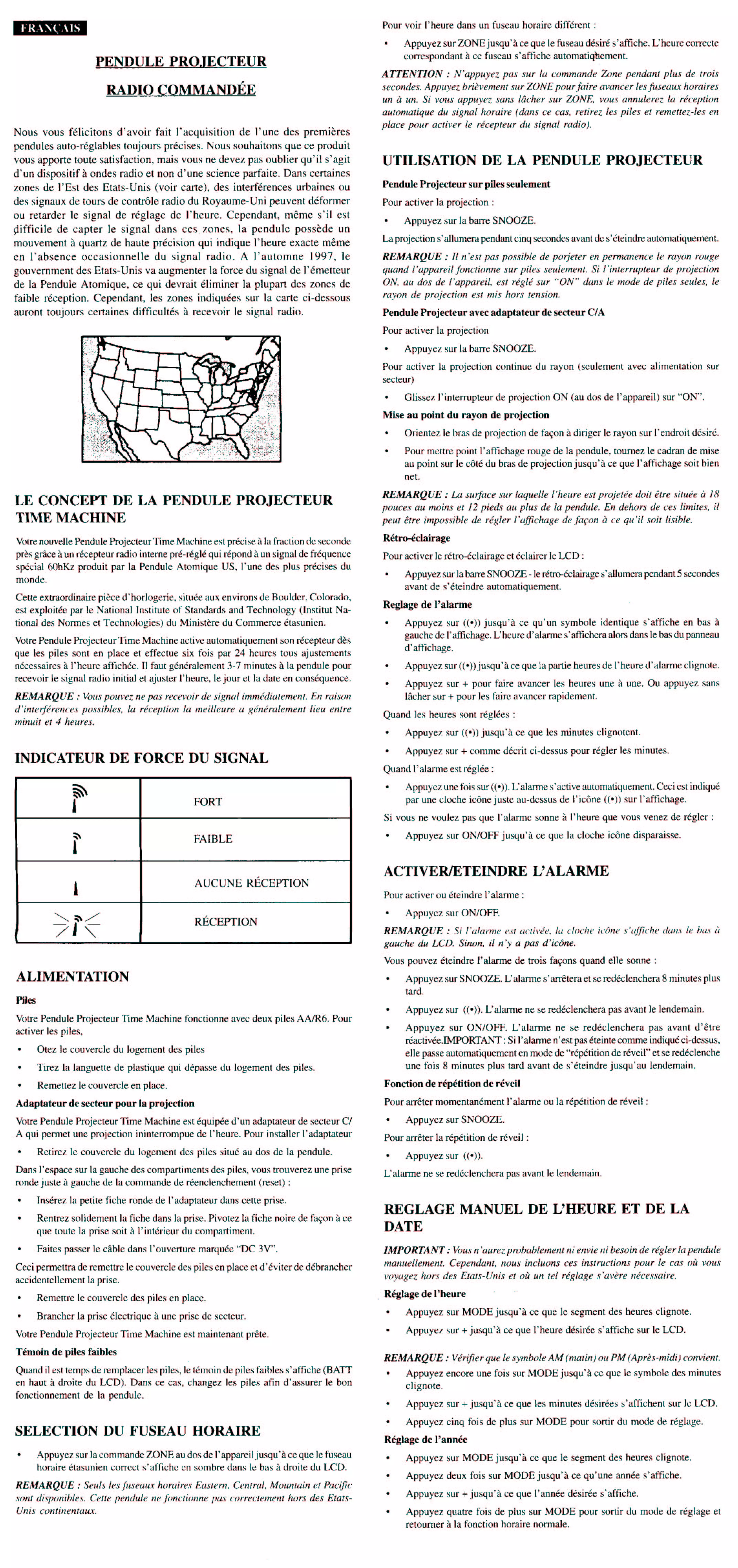 RM 818 P.1 - Pendule projection OREGON - Notice d'utilisation et mode d'emploi gratuit
