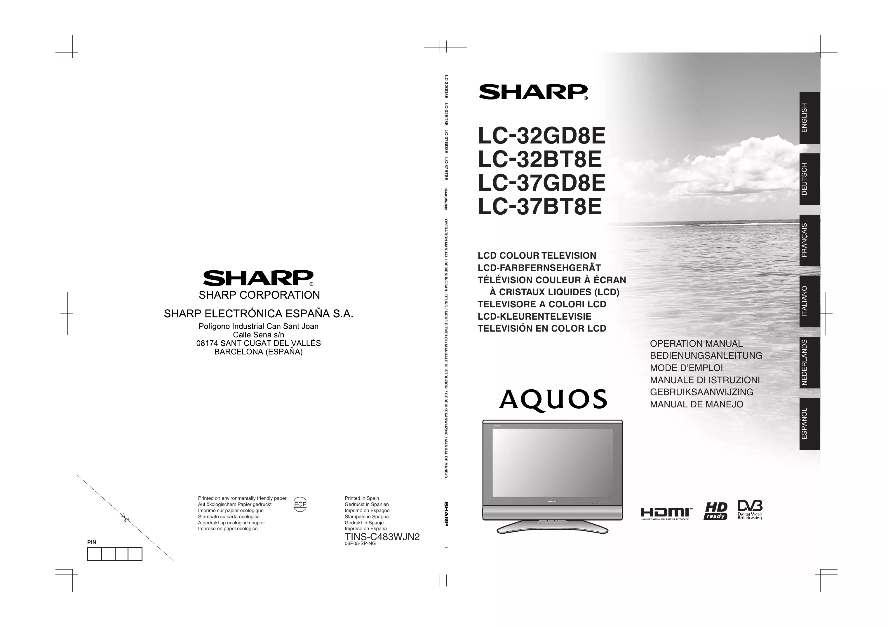 Retrouvez gratuitement la notice de l'appareil LC-376D8 SHARP au format PDF.