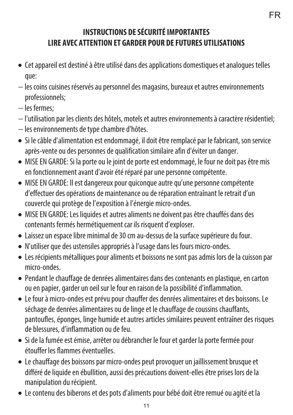 - N'utiliser que des ustensiles appropriés à l'usage dans les fours micro-ondes.