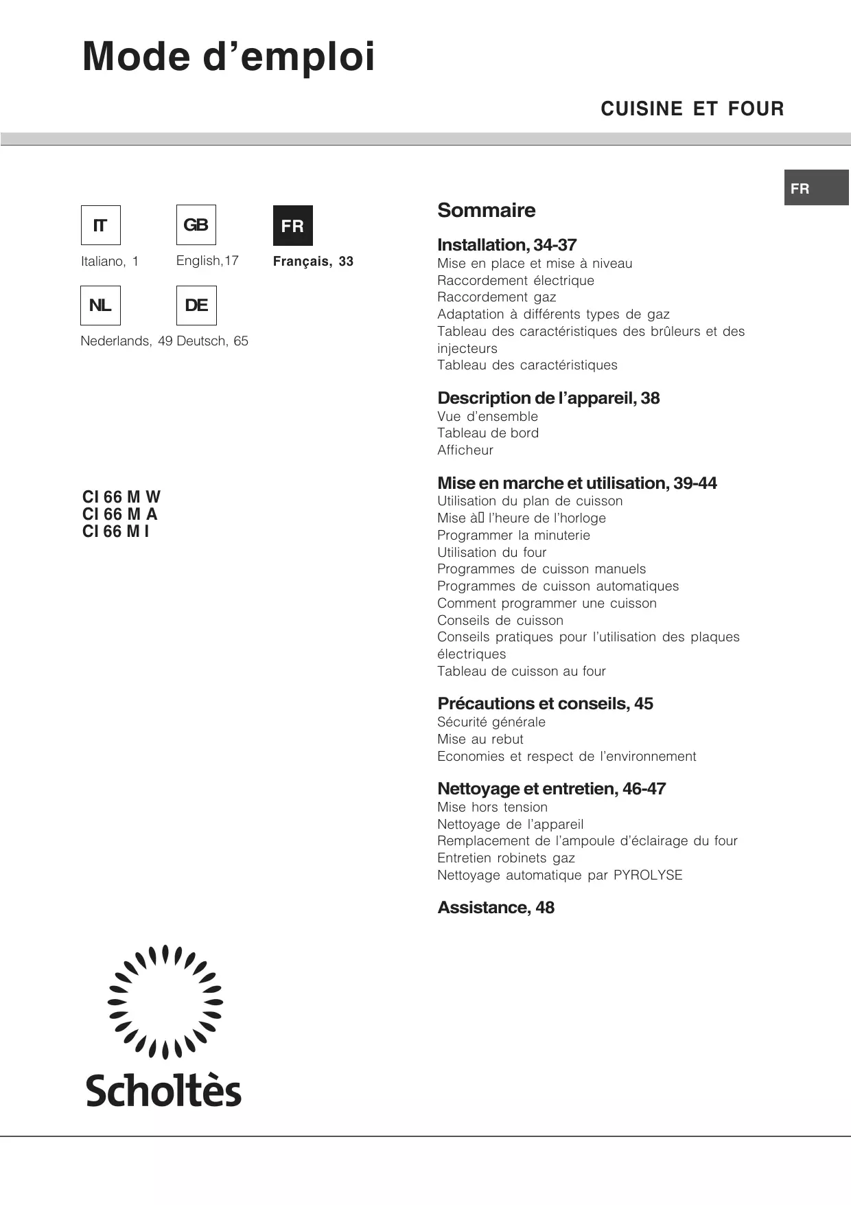 SEMMPAAGW - Four SCHOLTES - Notice d'utilisation et mode d'emploi gratuit