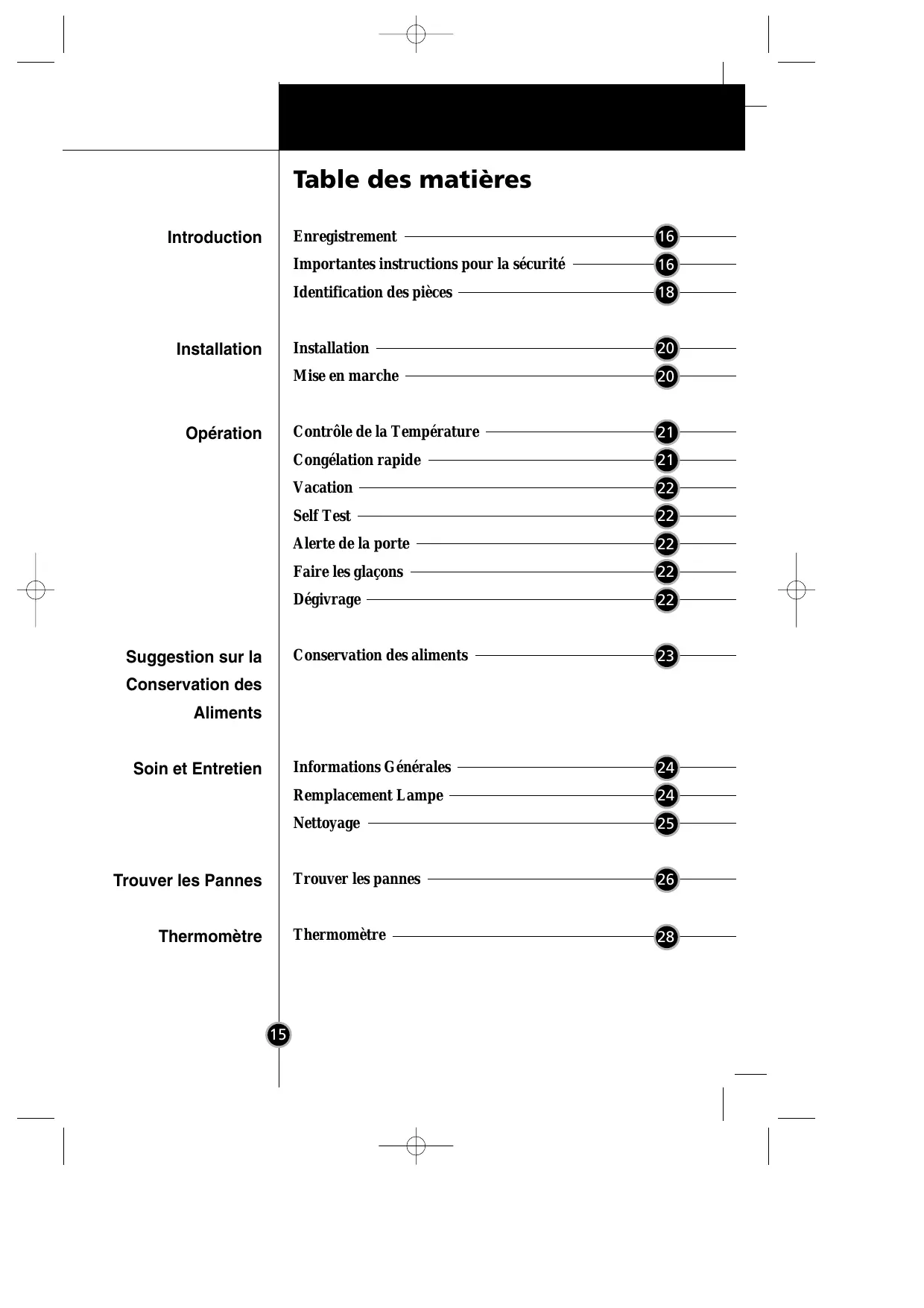 | Congélation rapide | 21 | |