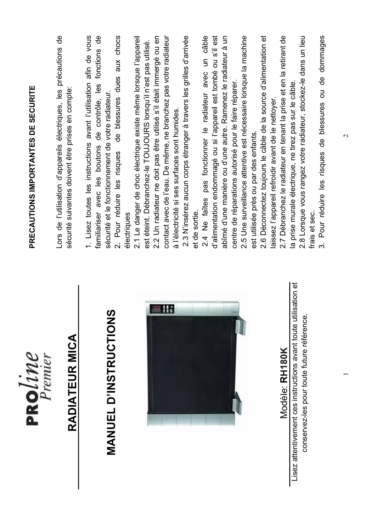 RH 108 K - Chauffage électrique PROLINE - Notice d'utilisation et mode d'emploi gratuit