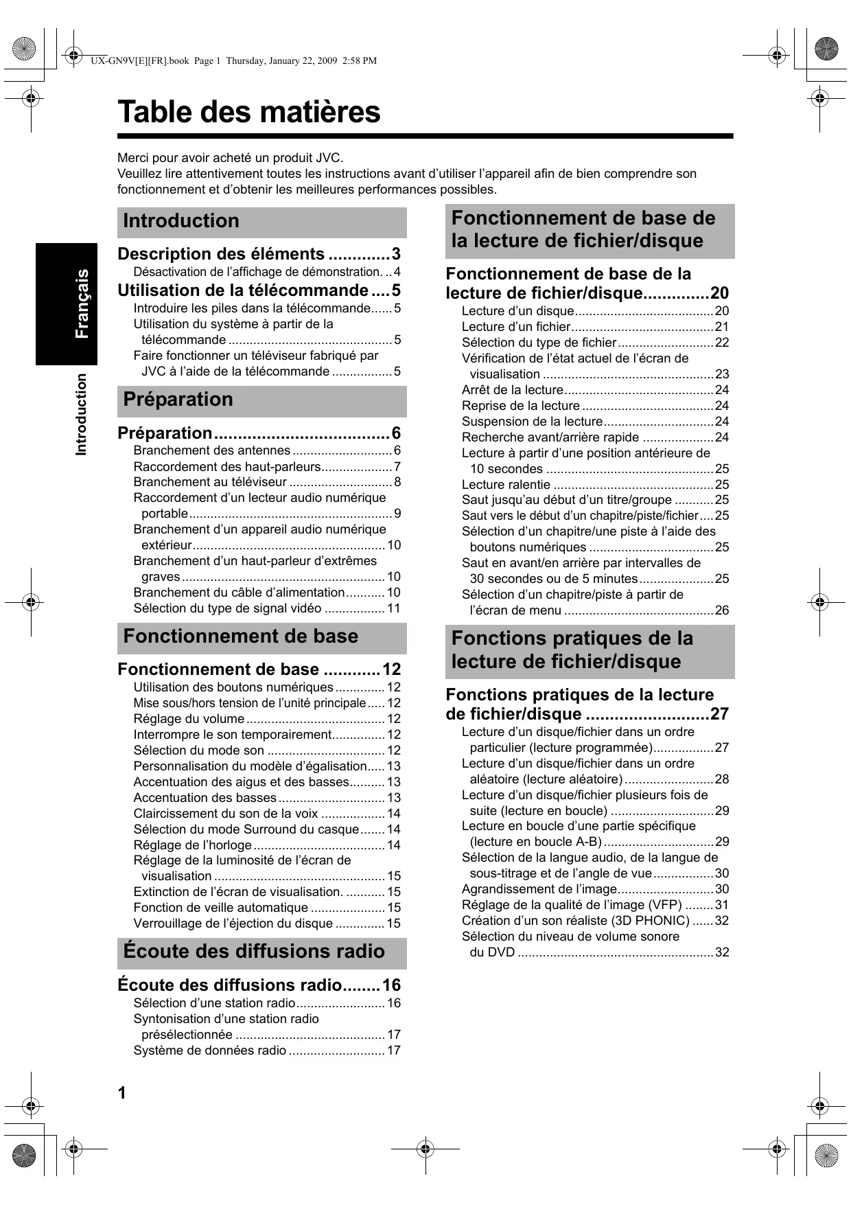Retrouvez gratuitement la notice de l'appareil UX-GN7 JVC au format PDF.