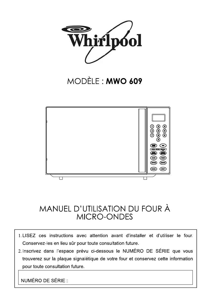 MWO 609/WH - Micro-ondes WHIRLPOOL - Notice d'utilisation et mode d'emploi gratuit