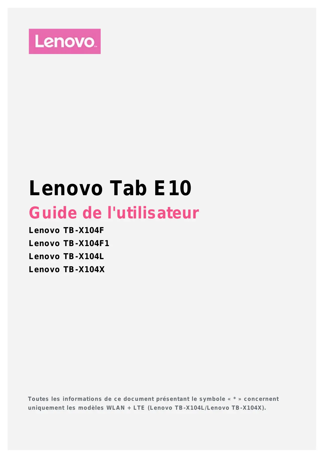 | Modèle | Lenovo TB-X104F/Lenovo TB-X104F1 | Lenovo TB-X104L/Lenovo TB-X104X |