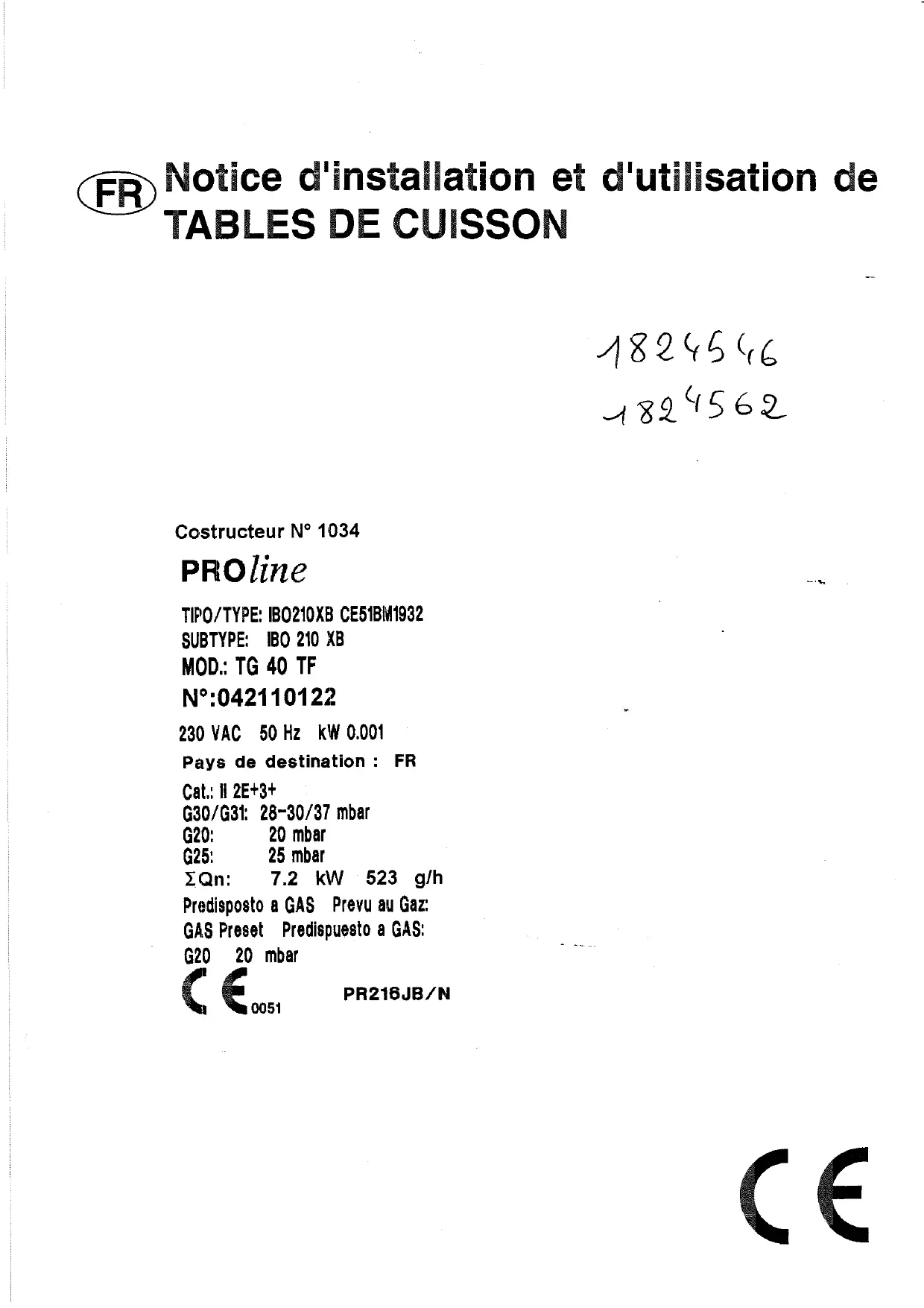 TG 40 TFT - Table de cuisson PROLINE - Notice d'utilisation et mode d'emploi gratuit