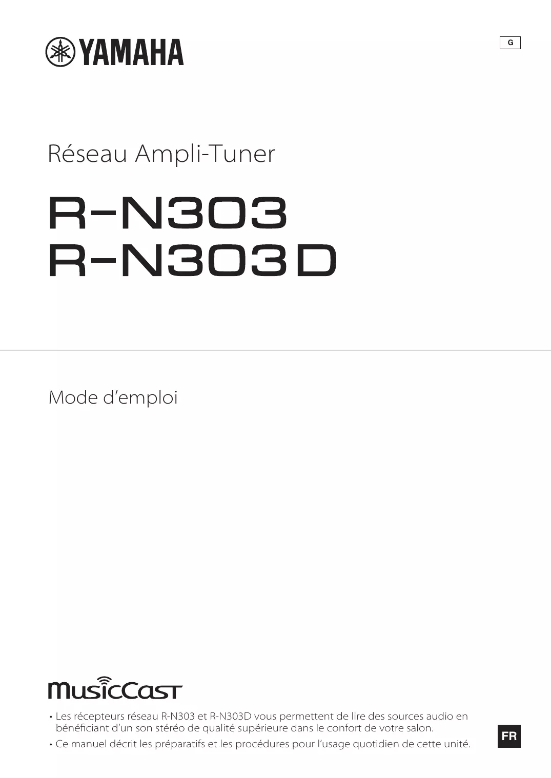(Pour le modèle R-N303D) L’unité prend en charge la syntonisation DAB/DAB+. Explications relatives à la licence GPL Certaines sections de ce produit font appel à un logiciel dit « libre GPL/LGPL ». Vous disposez uniquement d’un droit d’obtention, de copie, de modification et de redistribution de ce code libre. Pour des informations sur le logiciel libre GPL/ LGPL et son obtention, ainsi que sur la licence GPL/LGPL, surfez sur le site Internet de la Yamaha Corporation (http://download.yamaha.com/sourcecodes/musiccast/).