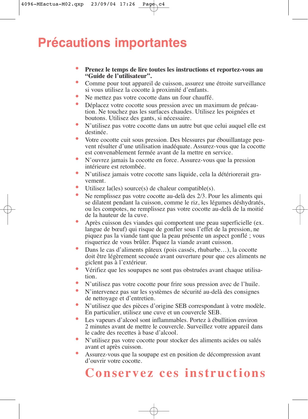 N'utilisez que des pieces d'origine SEB correspondant à votre modele. En particulier,utilisez une cuve et un couvercle SEB. - Les vapeurs d'alcool sont inflammables. Portez à ébullition environ 2 minutes avant demettre le couvercle. Surveillez votre apparéil dans le cadre des recettes à base d'alcool.