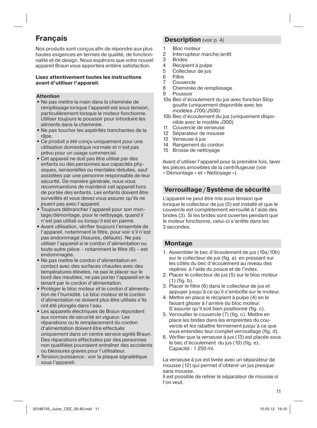 J700 - Extracteur de jus BRAUN - Notice d'utilisation et mode d'emploi gratuit