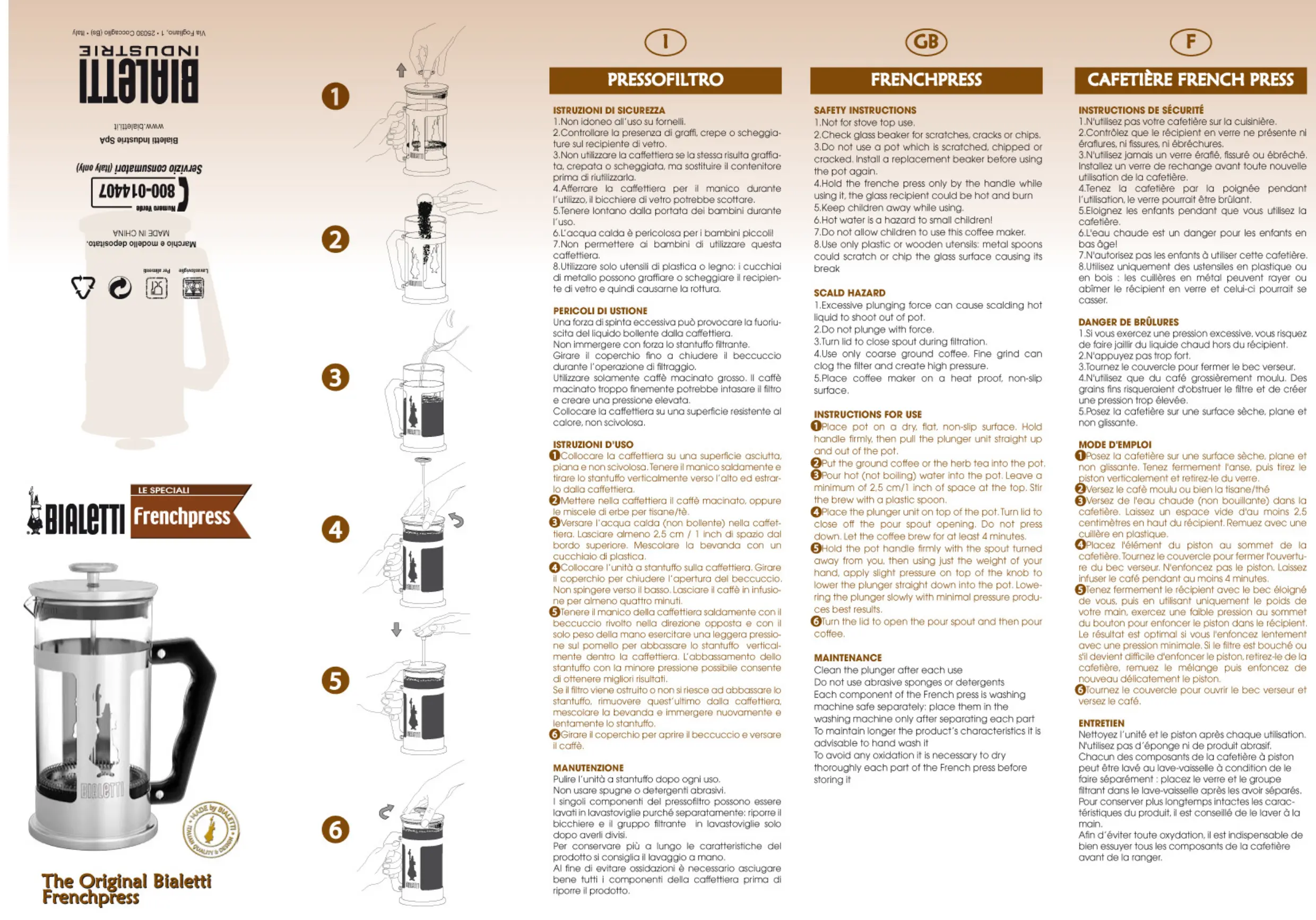 Notice BIALETTI 3190 FRENCH PRESS 1L - page 1