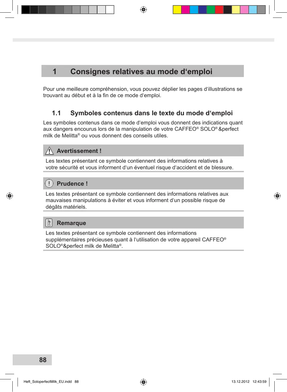 Heft_SoloperfectMilk_EU.indd 91 Lors de la première mise en service, nous vous conseillons de jeter les deux premières tasses préparées.
