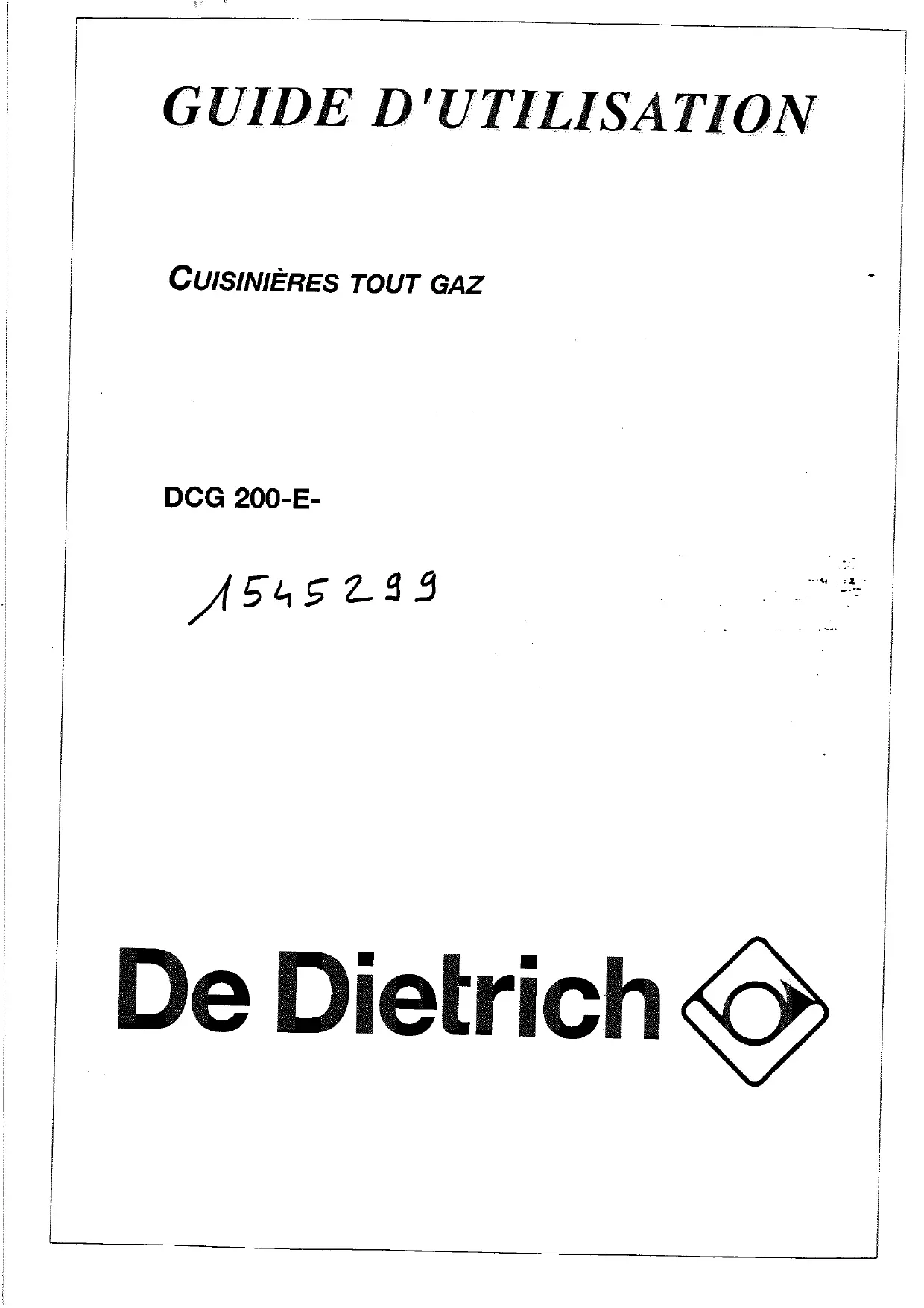 DCG200WE1 - Cuisiniere gaz DE DIETRICH - Notice d'utilisation et mode d'emploi gratuit
