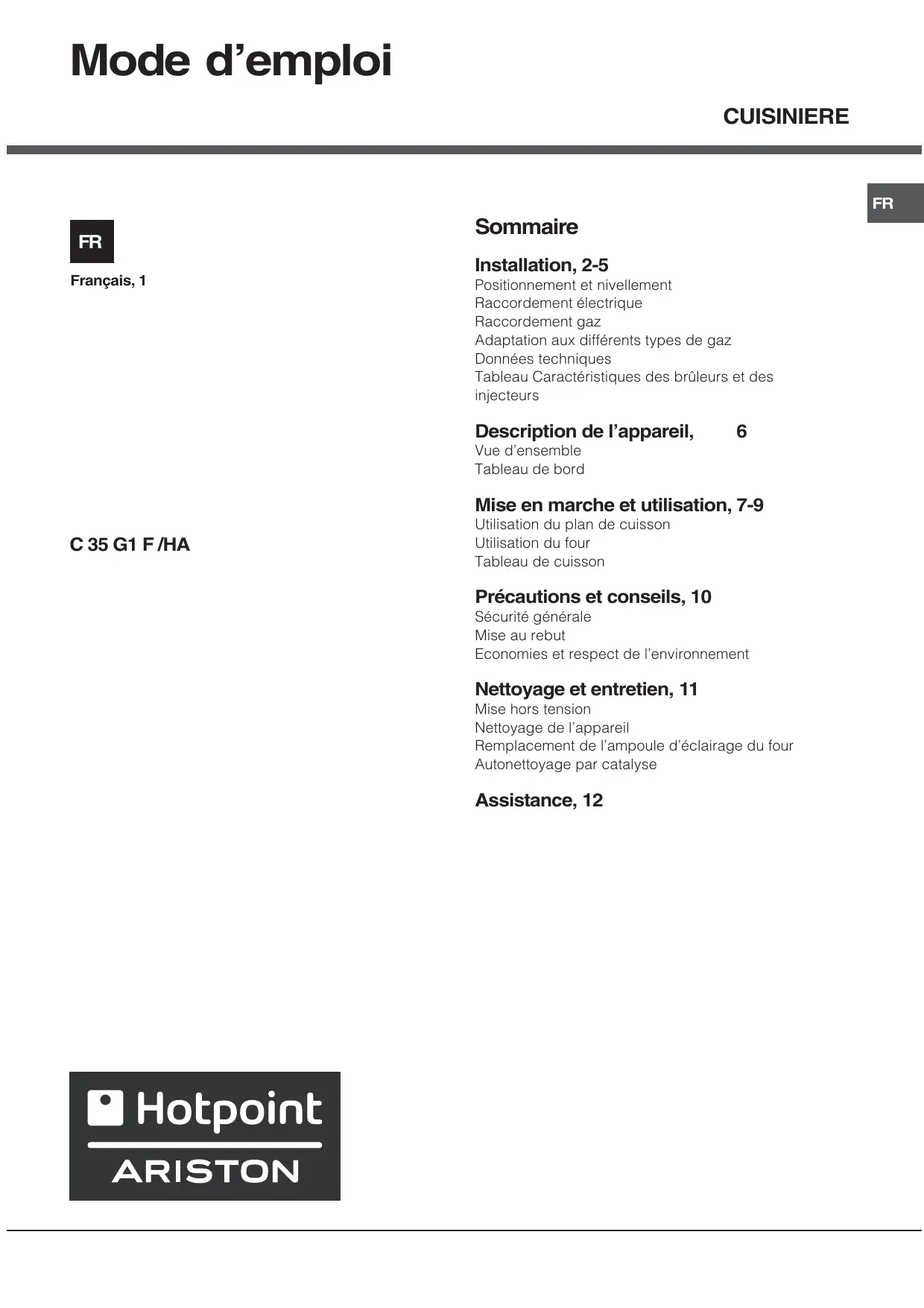 C 3561 X F/HAC - Cuisinière HOTPOINT - Notice d'utilisation et mode d'emploi gratuit