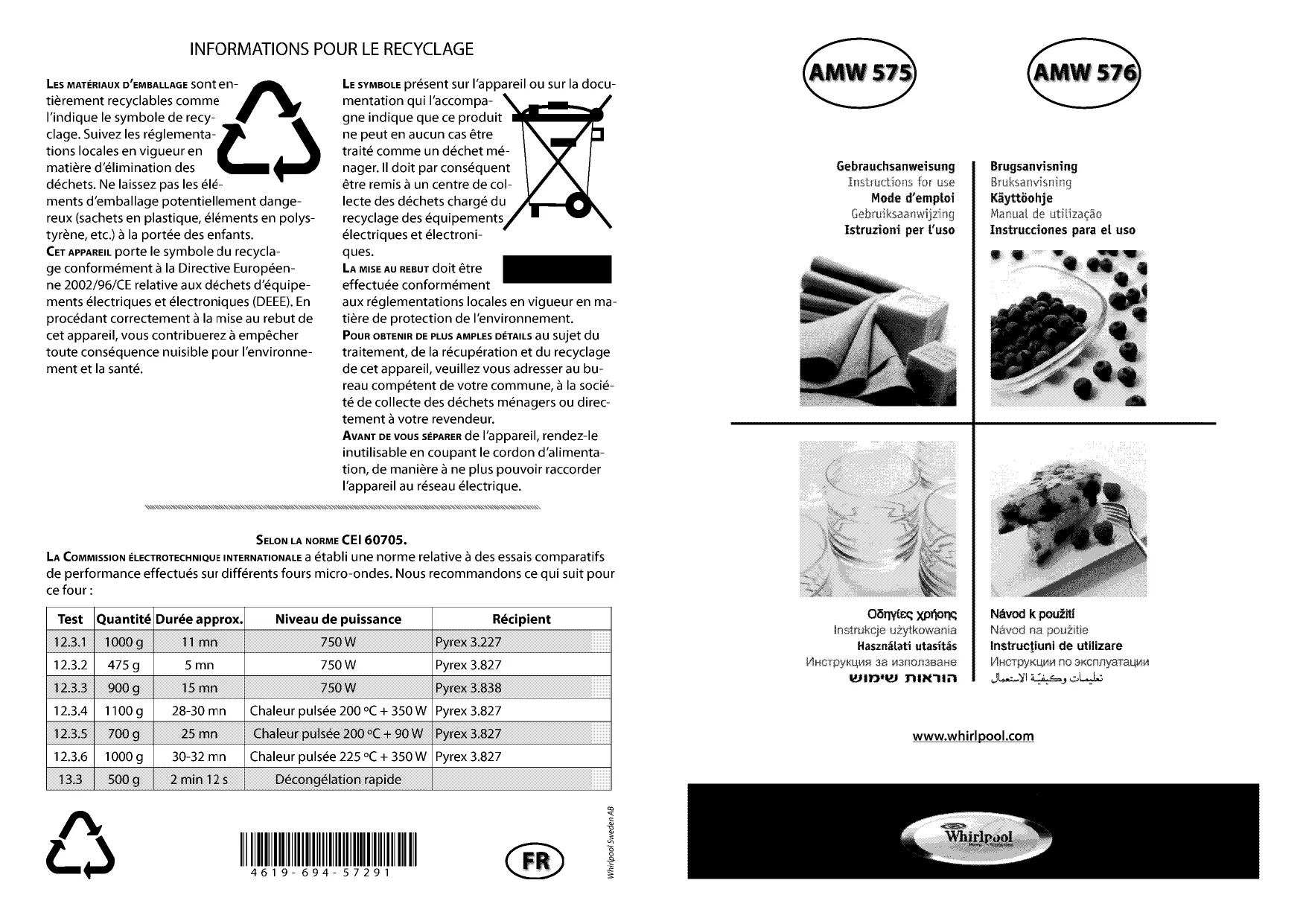 Téléchargez la notice de votre Micro-ondes au format PDF gratuitement ! Retrouvez votre notice 576 NB NOIR - WHIRLPOOL et reprennez votre appareil électronique en main. Sur cette page sont publiés tous les documents nécessaires à l'utilisation de votre appareil 576 NB NOIR de la marque WHIRLPOOL.