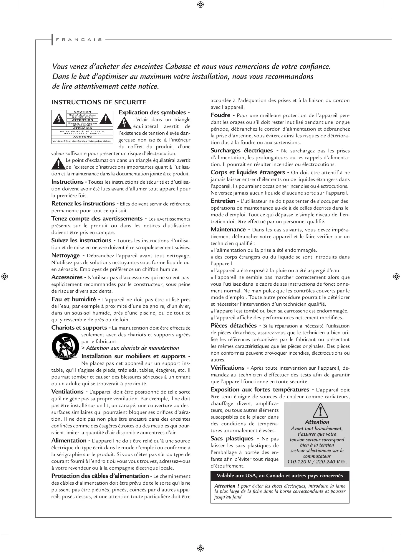 Amplificateur / Amplifier / Verstäker ORION francais Vous venez d’acheter des enceintes Cabasse et nous vous remercions de votre confiance. Dans le but d’optimiser au maximum votre installation, nous vous recommandons de lire attentivement cette notice.