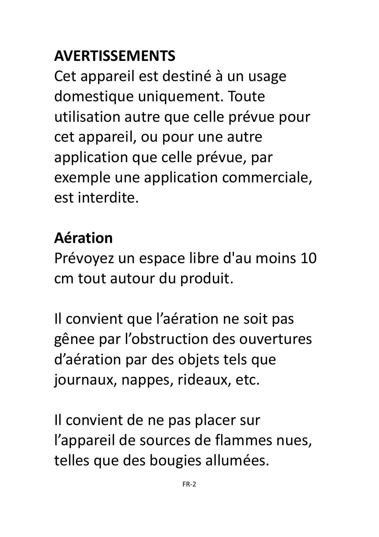 Table des matières AVERTISSEMENTS 2 CONSIGNES DE SÉCURITÉ IMPORTANTES 4 COMMANDES 7 UTILISER DES PILES (NON FOURNIES) 7 Il convient de ne pas placer sur l’appareil de sources de flammes nues, telles que des bougies allumées. FR-2