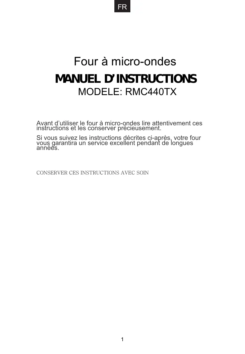 RMC440TX - Micro-ondes ROSIERES - Notice d'utilisation et mode d'emploi gratuit