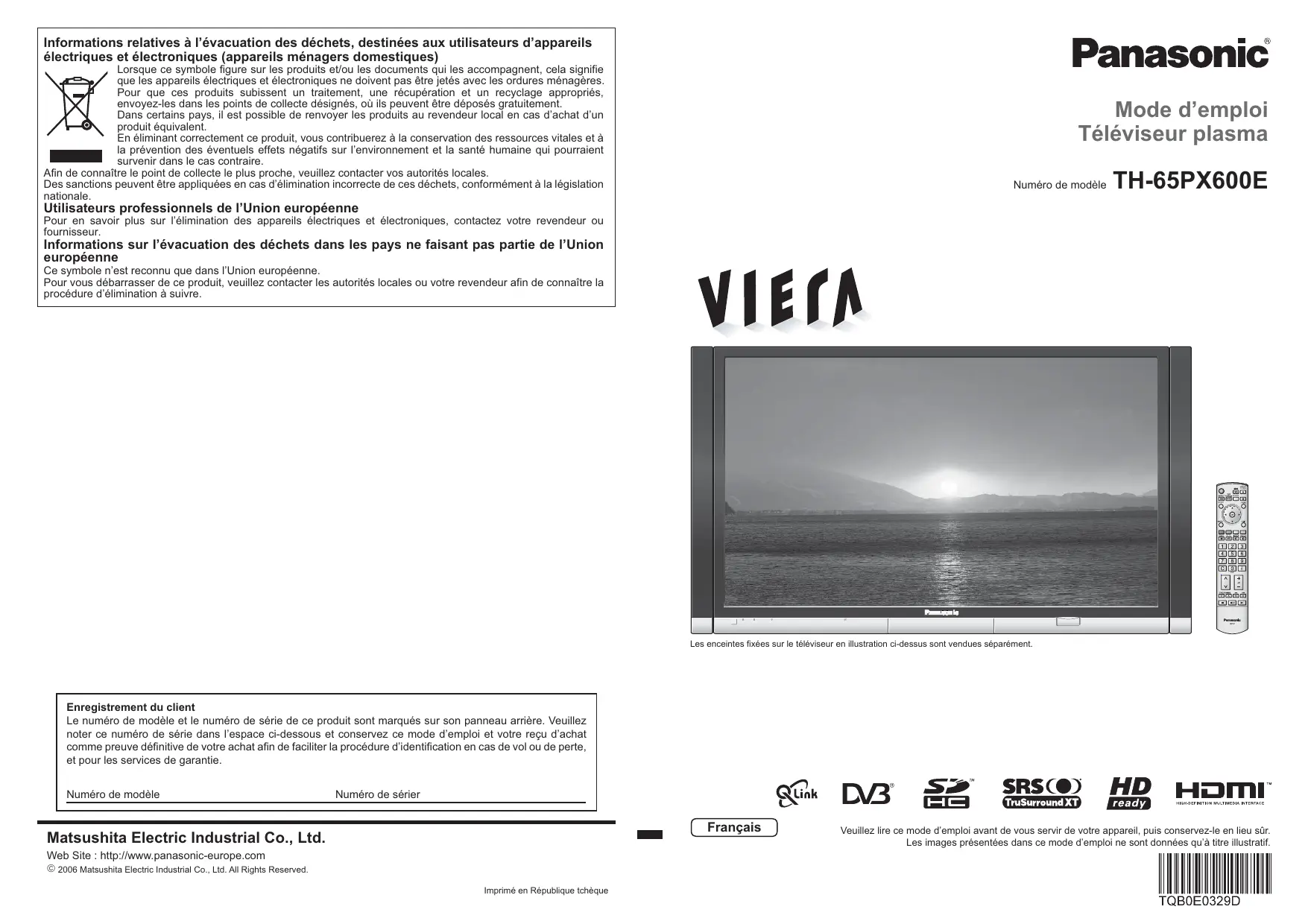 Retrouvez gratuitement la notice de l'appareil PACK-TH-65PX600E PANASONIC au format PDF.