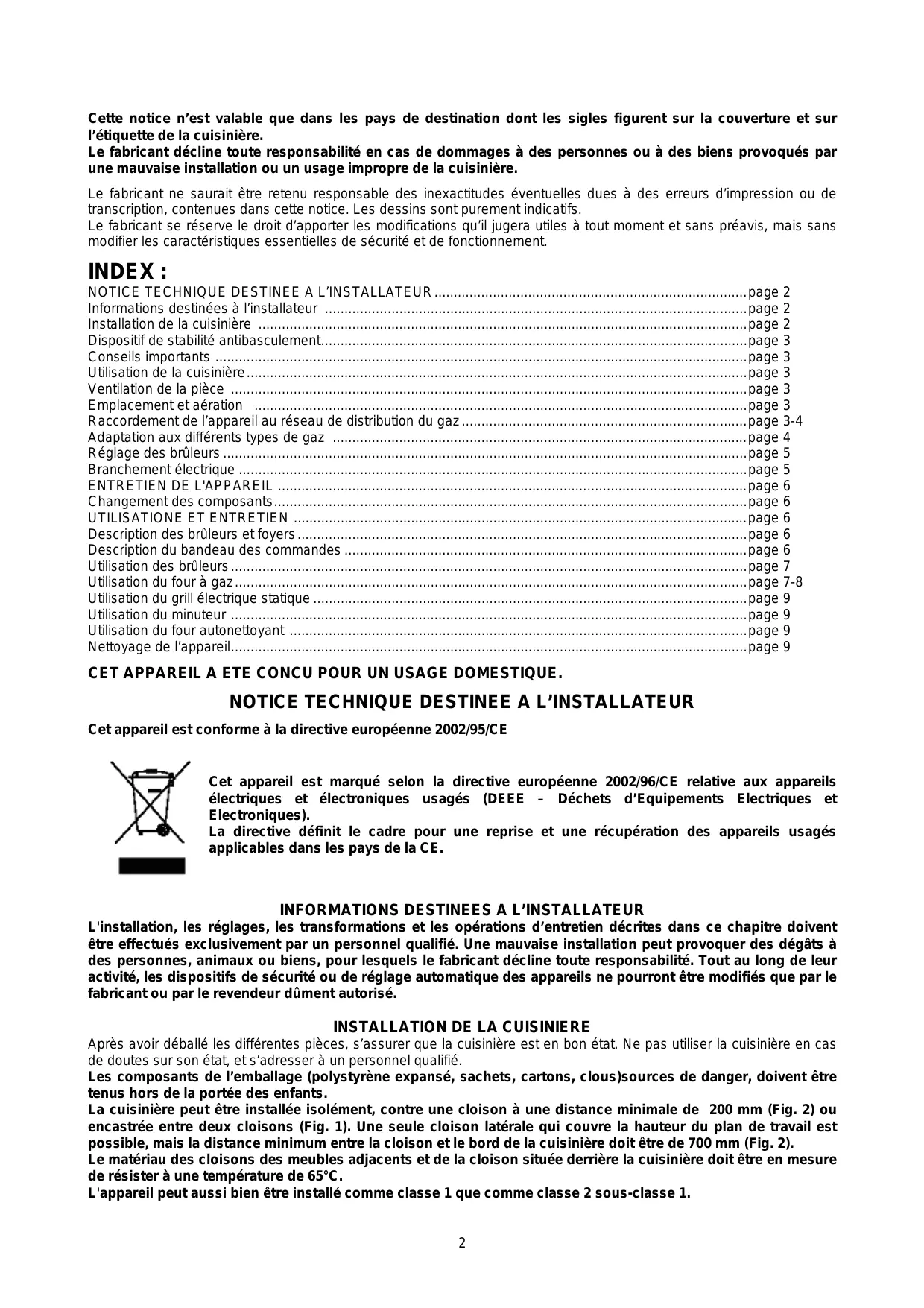 Informations destinées à l'installateur page 2