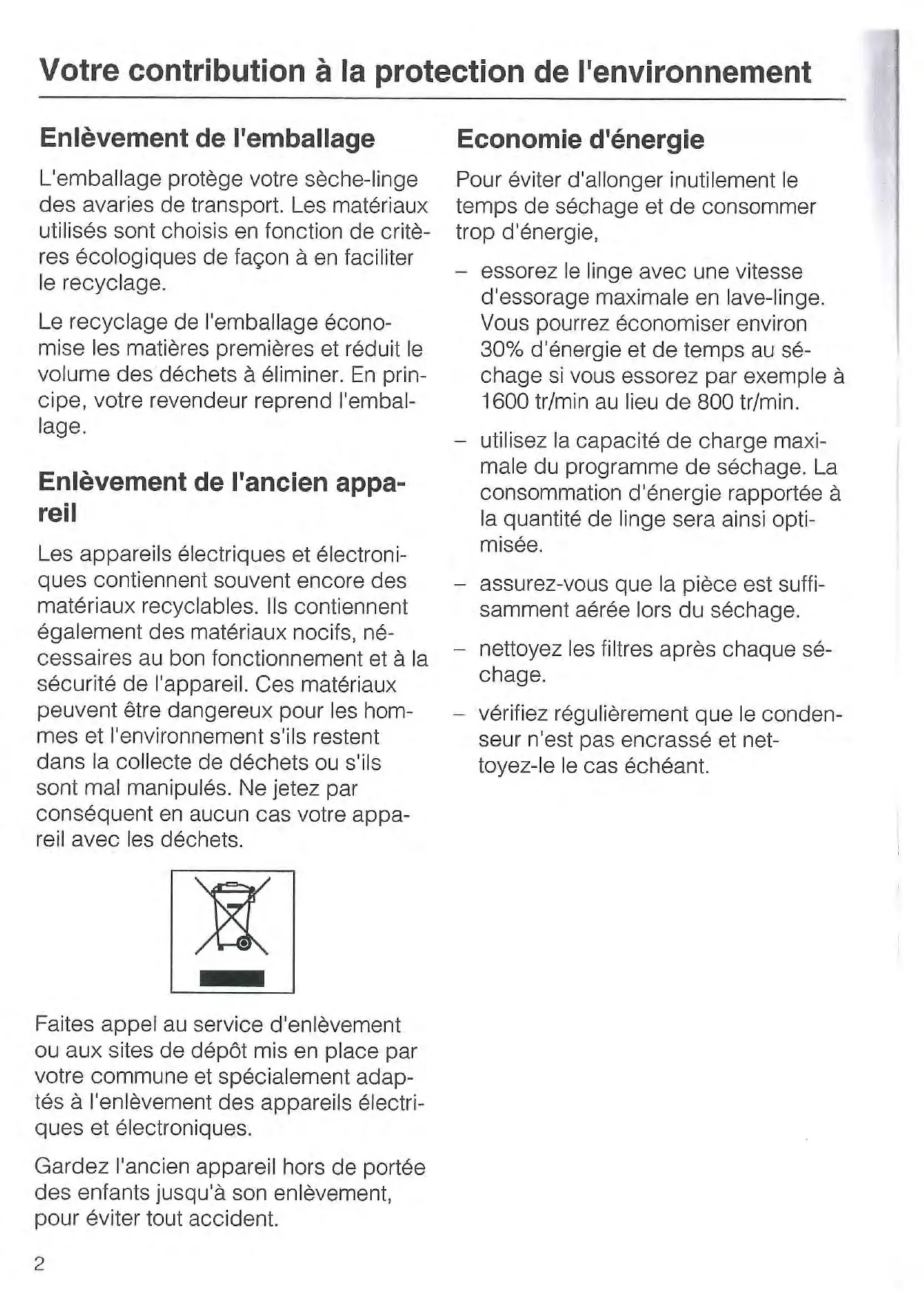 | Informations générales | Fabrication allemande, garantie de 2 ans, service après-vente Miele |