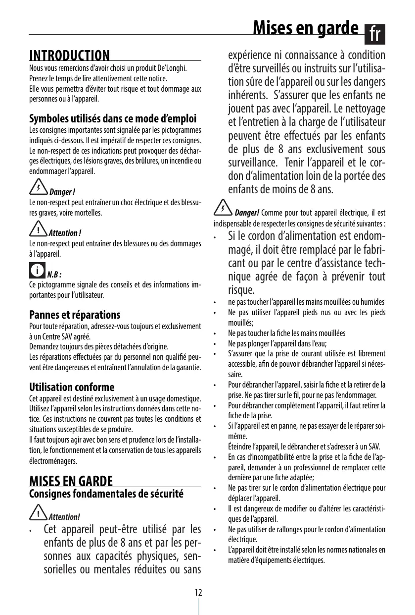 Nous vous remercions d'avoir besoin un produit De'Longhi.