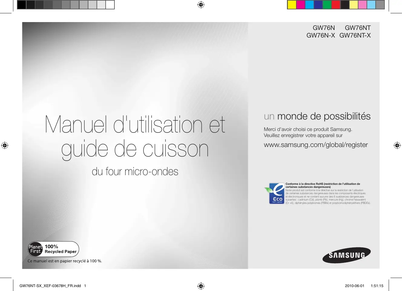 GW76NT-SX - Micro-ondes SAMSUNG - Notice d'utilisation et mode d'emploi gratuit