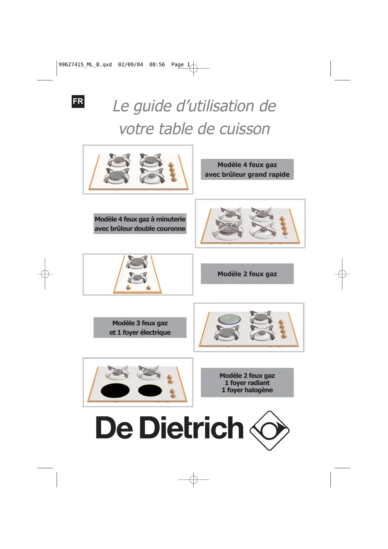 DTG 315 XL1 - Table de cuisson DE DIETRICH - Notice d'utilisation et mode d'emploi gratuit