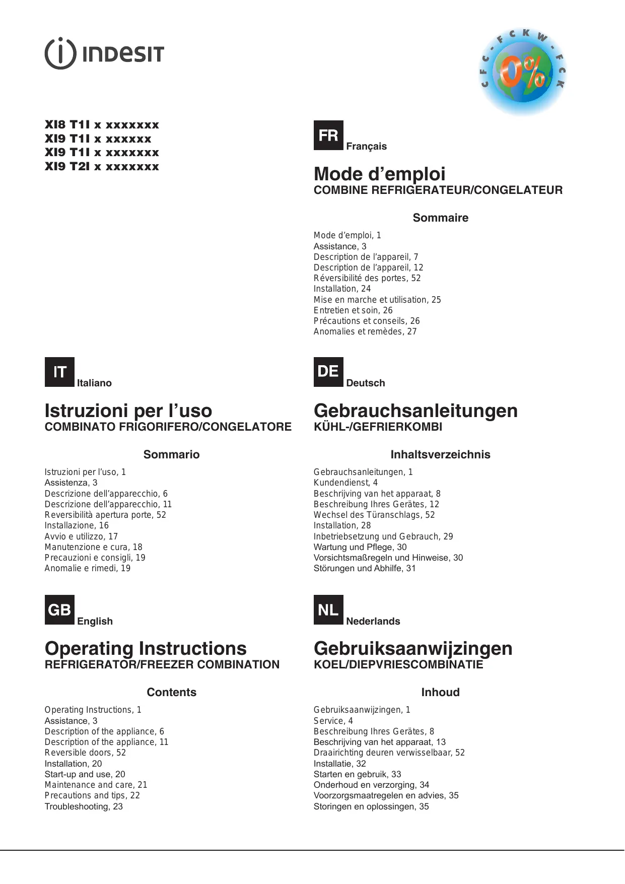 Retrouvez gratuitement la notice de l'appareil Xi9T2iX INDESIT au format PDF.