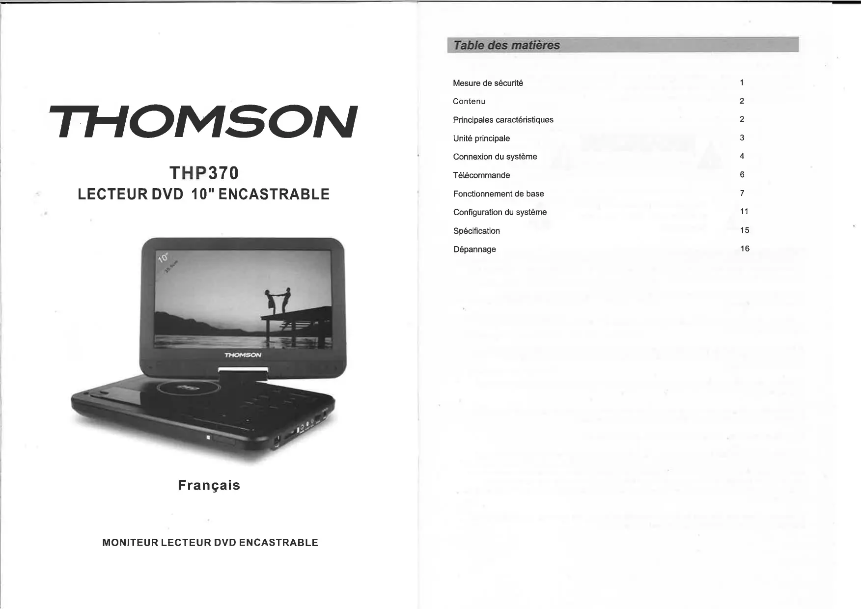 THP370 - DVD portable THOMSON - Notice d'utilisation et mode d'emploi gratuit