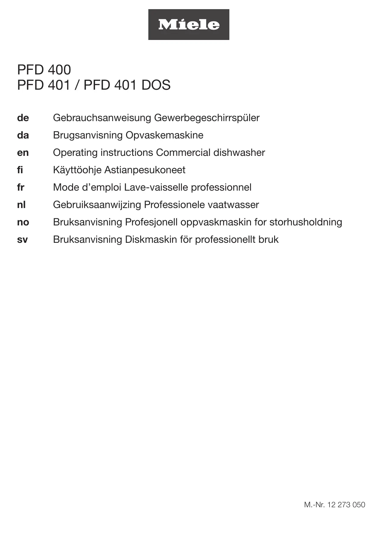 Retrouvez gratuitement la notice de l'appareil PFD401LW MIELE au format PDF.
