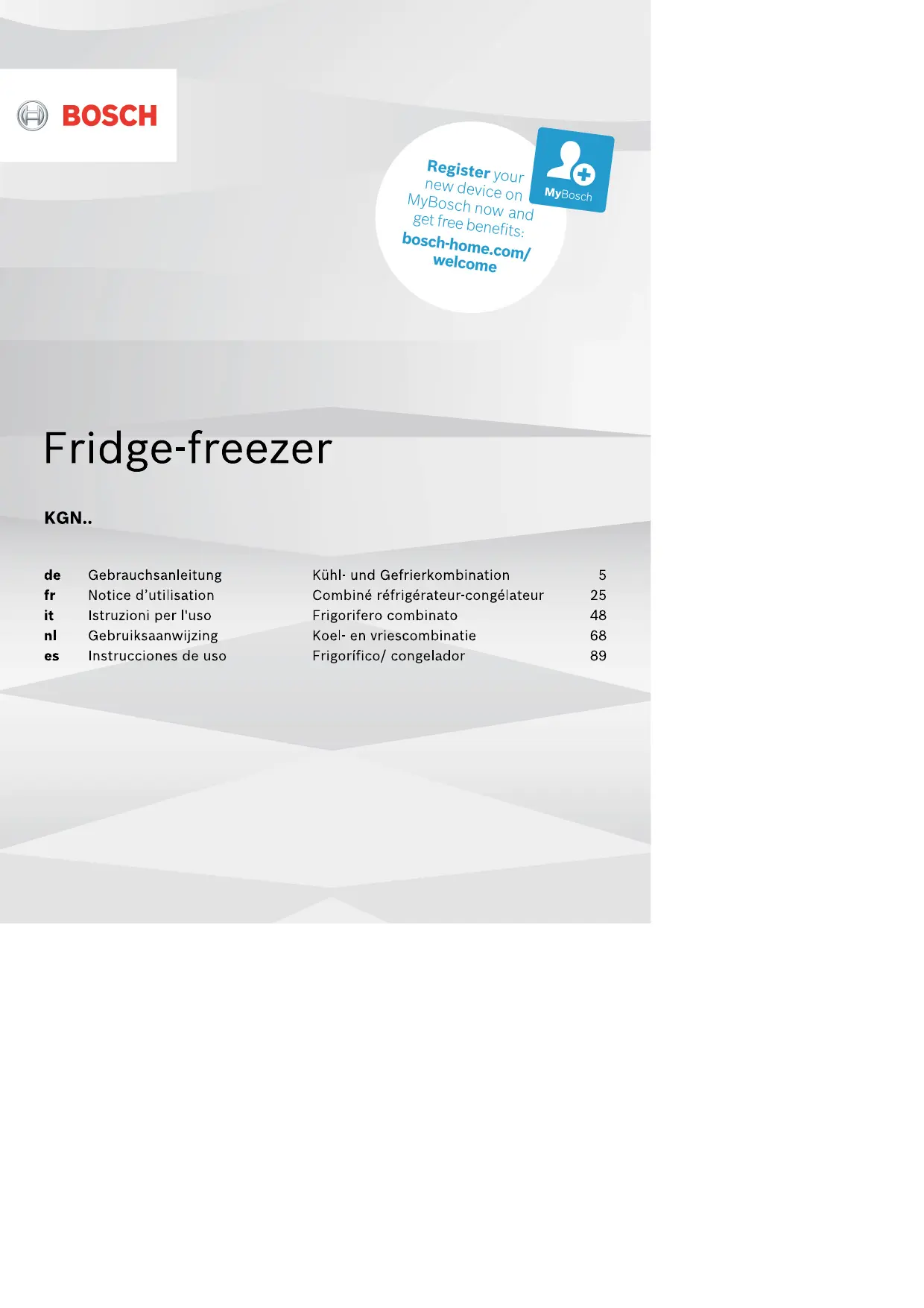 KGN39VLEB - Réfrigérateur-congélateur BOSCH - Notice d'utilisation et mode d'emploi gratuit