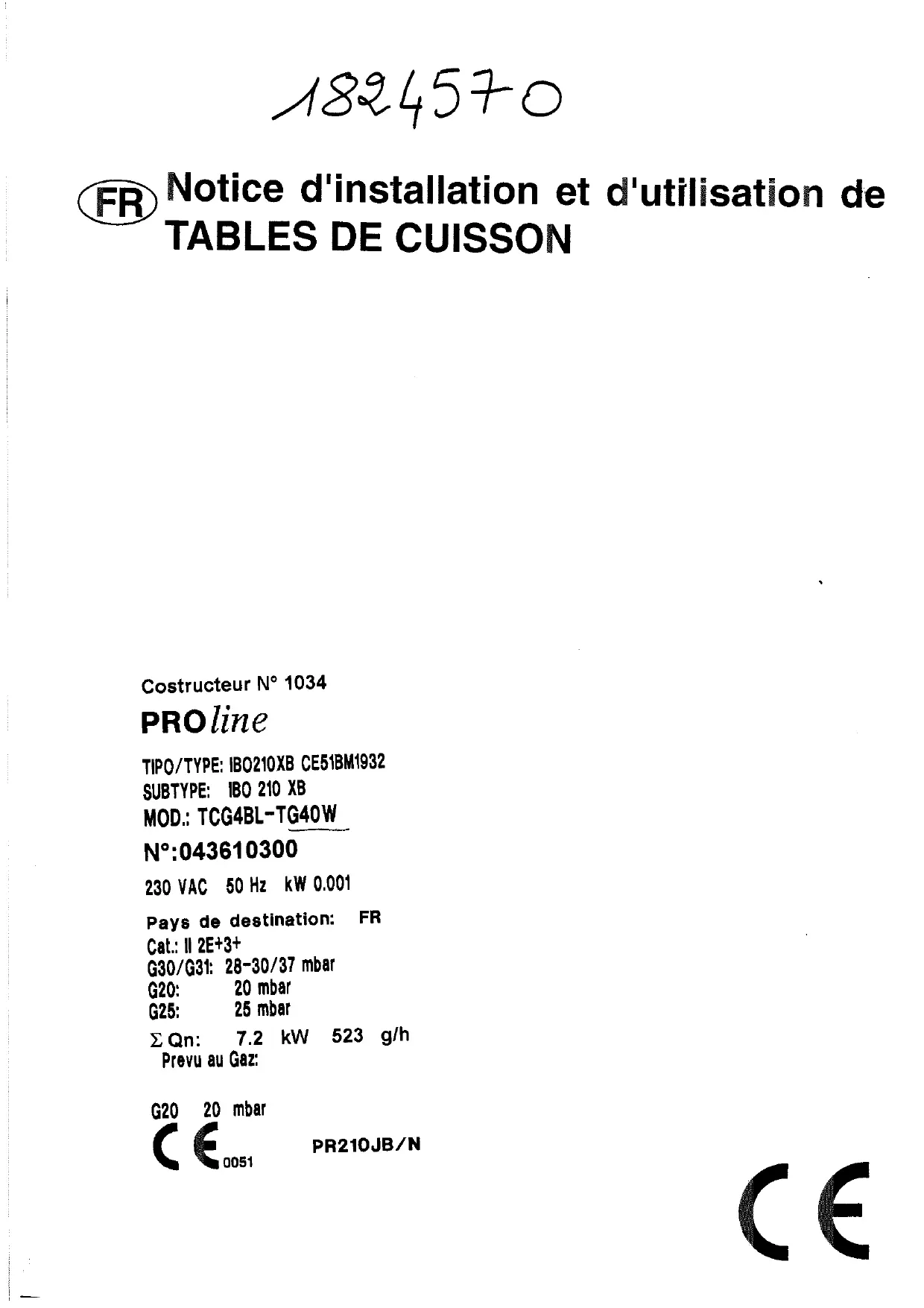 TG 40 WC - Plaque de cuisson PROLINE - Notice d'utilisation et mode d'emploi gratuit