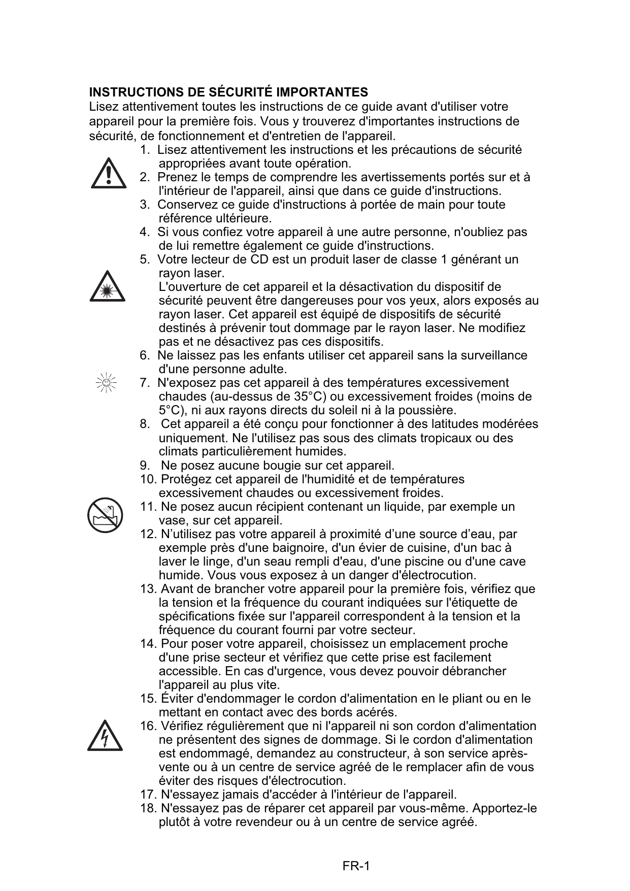 - Notre lecteur de CD est un produit laser de classe 1 générant un rayon laser.