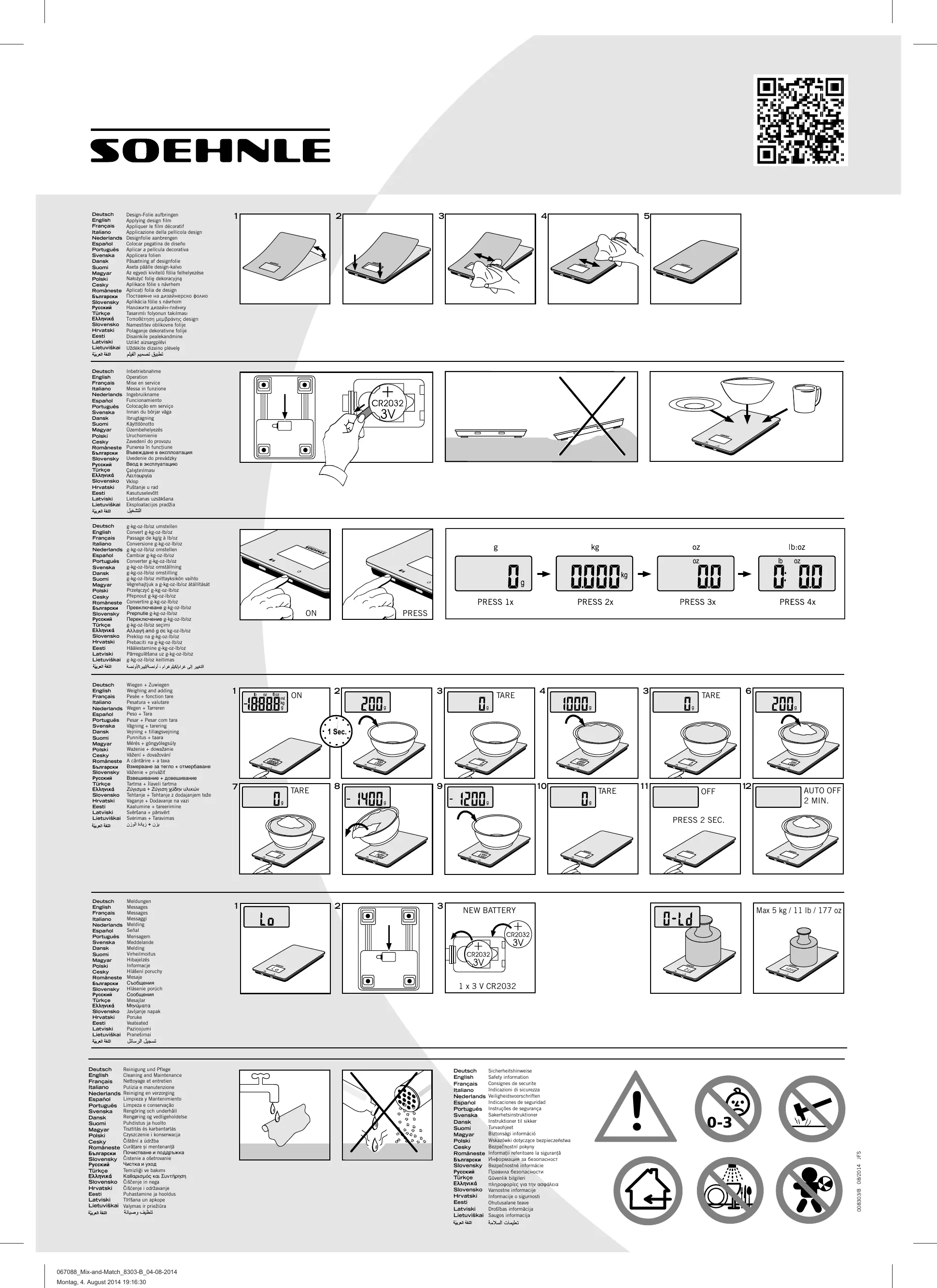 Technische Änderungen und Irrtum der Vorhabten / Subject to technical modifications and errors / Sous reserve de modifications techniques et et des erreurs / Si riserviamo il dirito di apportare modifiche tecniche ed errori / Technische wizigingen en fouiten voorheden / Ret til teknske aendringer og fejl forbeholdes / Forbehall for teknska andringar och fel / Se reserva el derecho de modificaciones Tecnicas y erores / Oikeus teknisin mutoksini ja virhe pitadetaaan / Muszaki valtzosak es hibak fenntartasaval / Sujeto a modificações tícnicas e erros / Tartinin teknik yapinsida deşigkeitlerve hatala rapma hakki saktir / Yróktro 0x Tevvičε διρθωεις και σραλμτυν / Pridržujemo sprovico do tehnicih speriment B/ Zadržavamo pravo na tehnicike izmjene / SOEHNLE jatab endale oligue teha tehilisi muudatus / Saglabajam tiesibas veekt teknesikas izmainas / Ne rezervām dreptul de a efectuà modificari tehnice / CoxaŋáHQTcR naaba HBNTH TKNHCKN NMMHN N rpeuken / 3anaéno pnaB na TECHNecK N MEmenén N ouM6k/N Galimi techninialpakeitimai / L'adiot