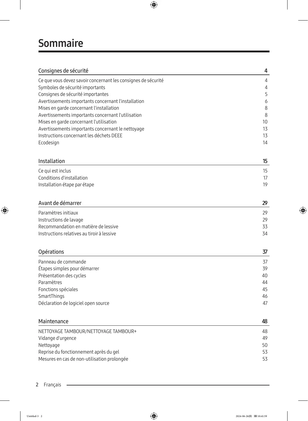 Untitled-3 1 2024-06-26( ) 10:41:59 Sommaire Consignes de sécurité