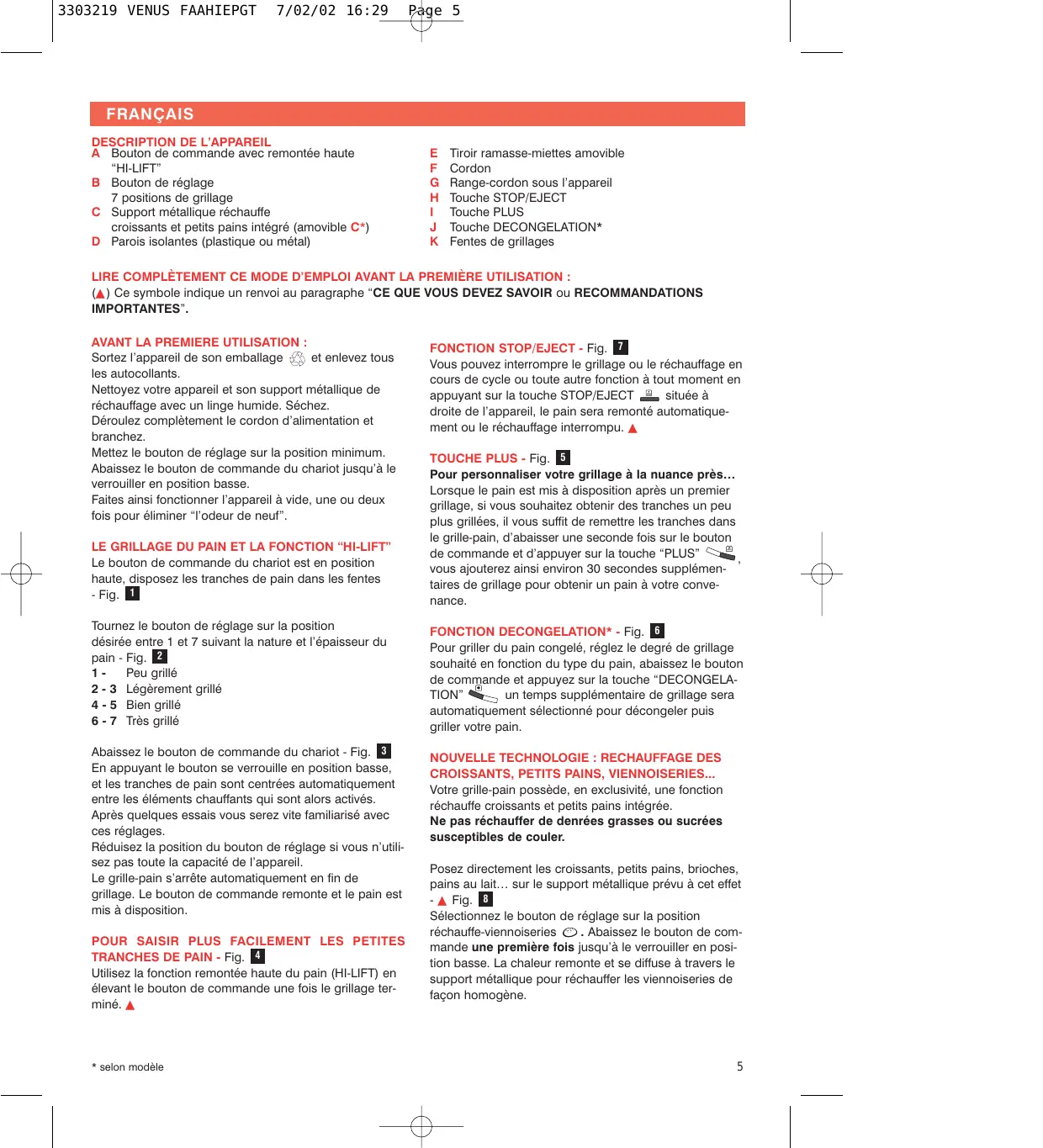 N'tilisez pas l'appareil simultanement pour le grillage du pain et le rechauffage des viennoiseries.