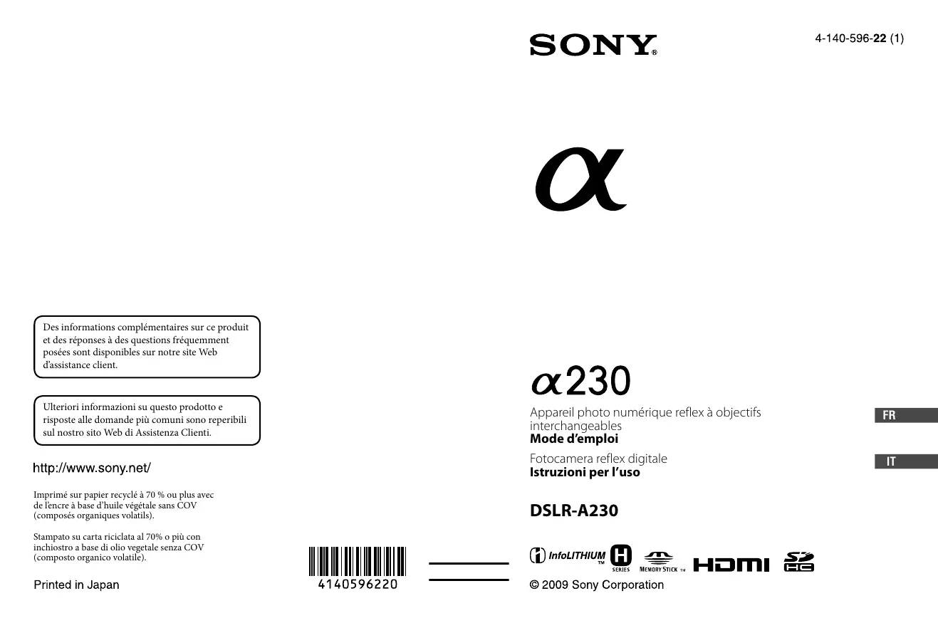 Retrouvez gratuitement la notice de l'appareil A 230 SONY au format PDF.