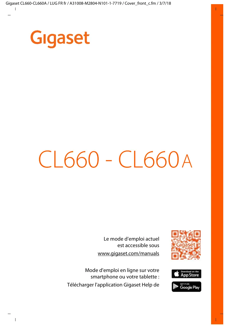 CL660 - CL660 A Le mode d’emploi actuel est accessible sous www.gigaset.com/manuals Mode d'emploi en ligne sur votre smartphone ou votre tablette : Télécharger l'application Gigaset Help de