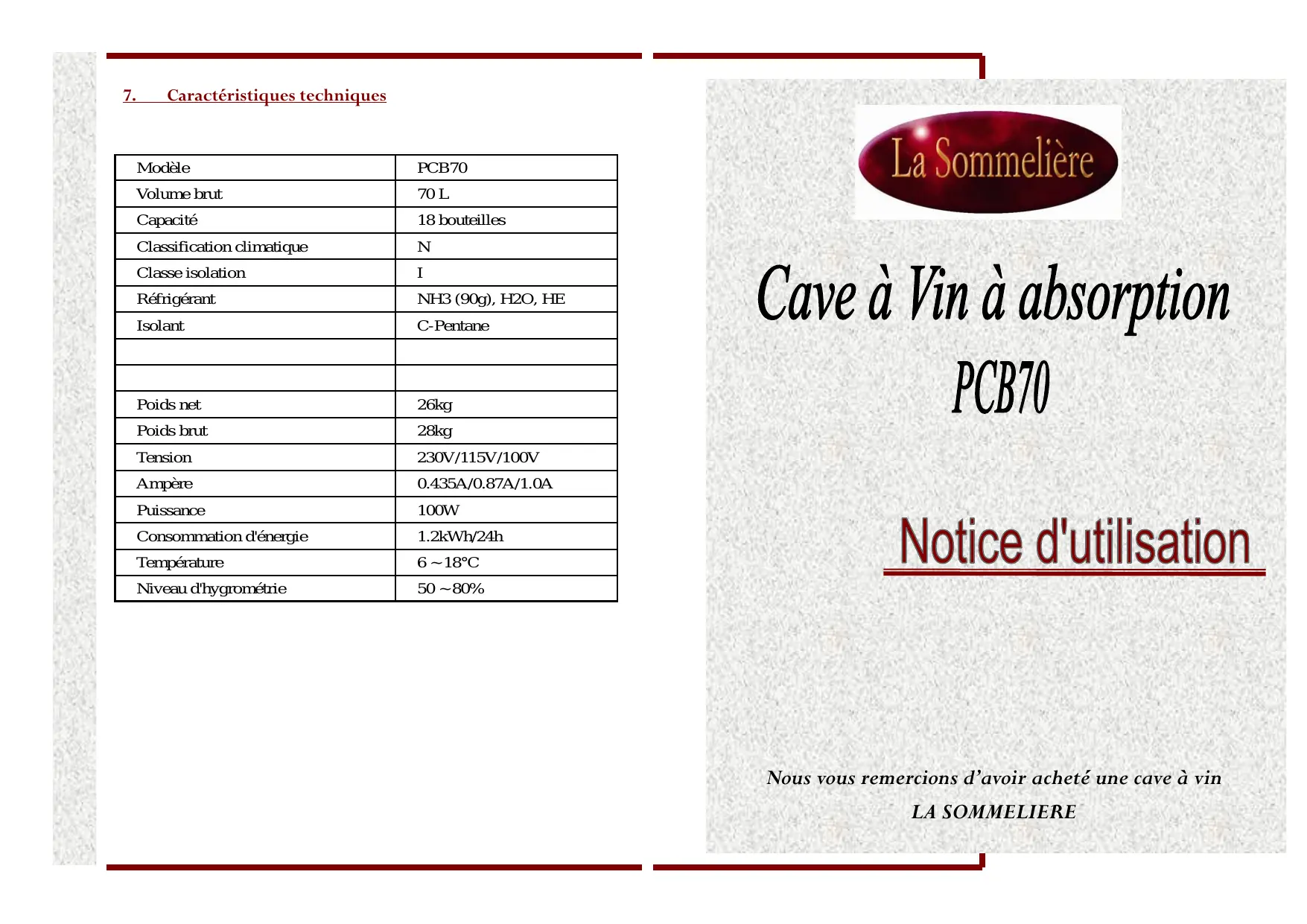 Retrouvez gratuitement la notice de l'appareil PCB 70 Bois Massif LA SOMMELIERE au format PDF.