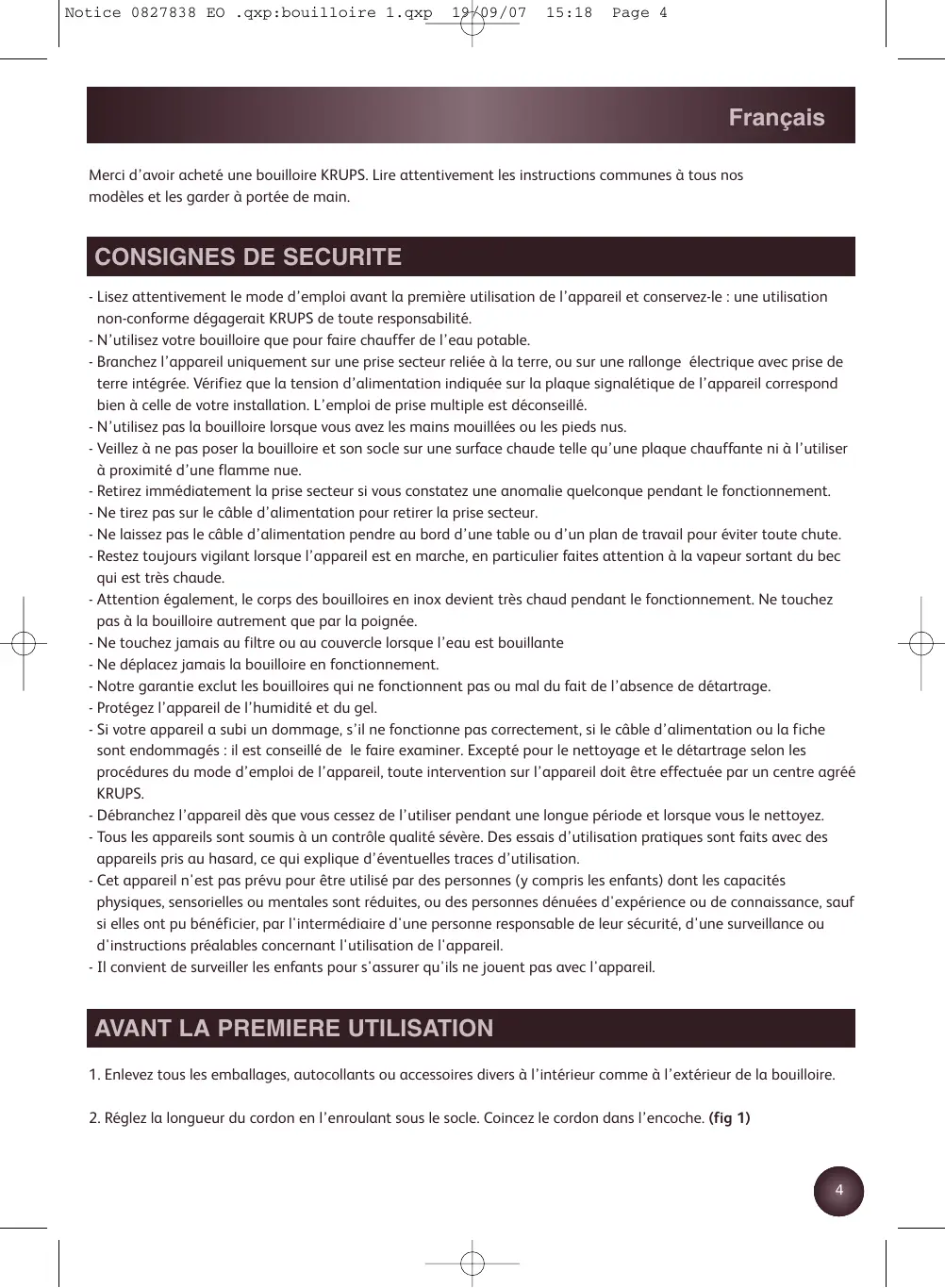 Merci d'avoir acheté une bouilloire KRUPS. Lire attentivement les instructions communes à tous nos modèles et les garder à portée de main.