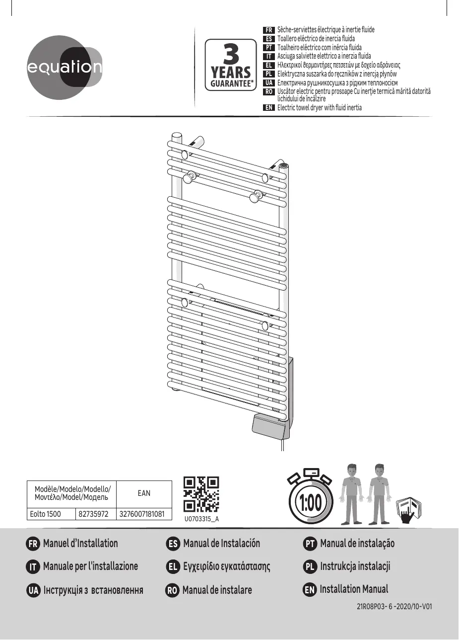 Eolto 1500W - Sèche-serviettes EQUATION - Notice d'utilisation et mode d'emploi gratuit