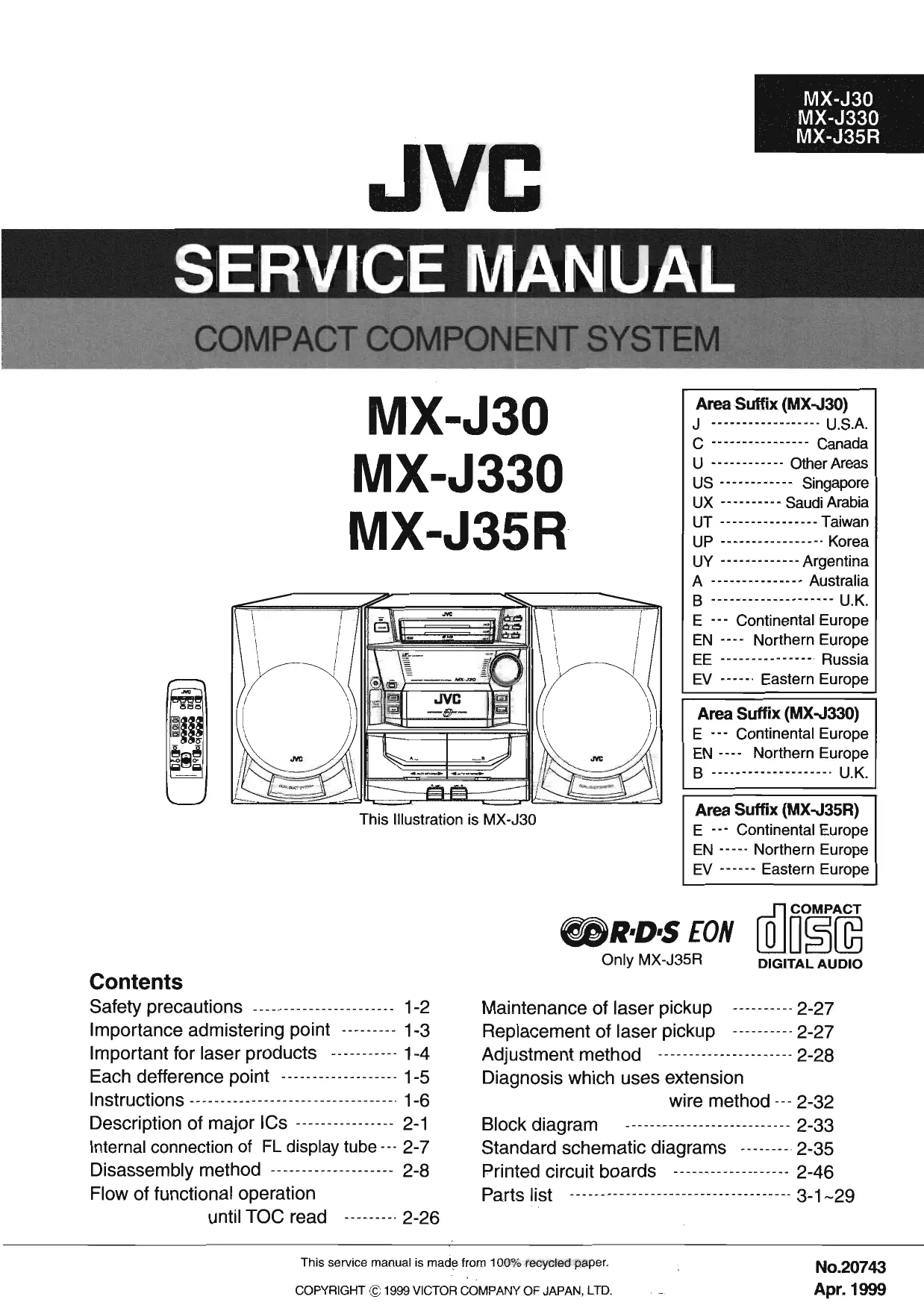Retrouvez gratuitement la notice de l'appareil MX-J35R JVC au format PDF.