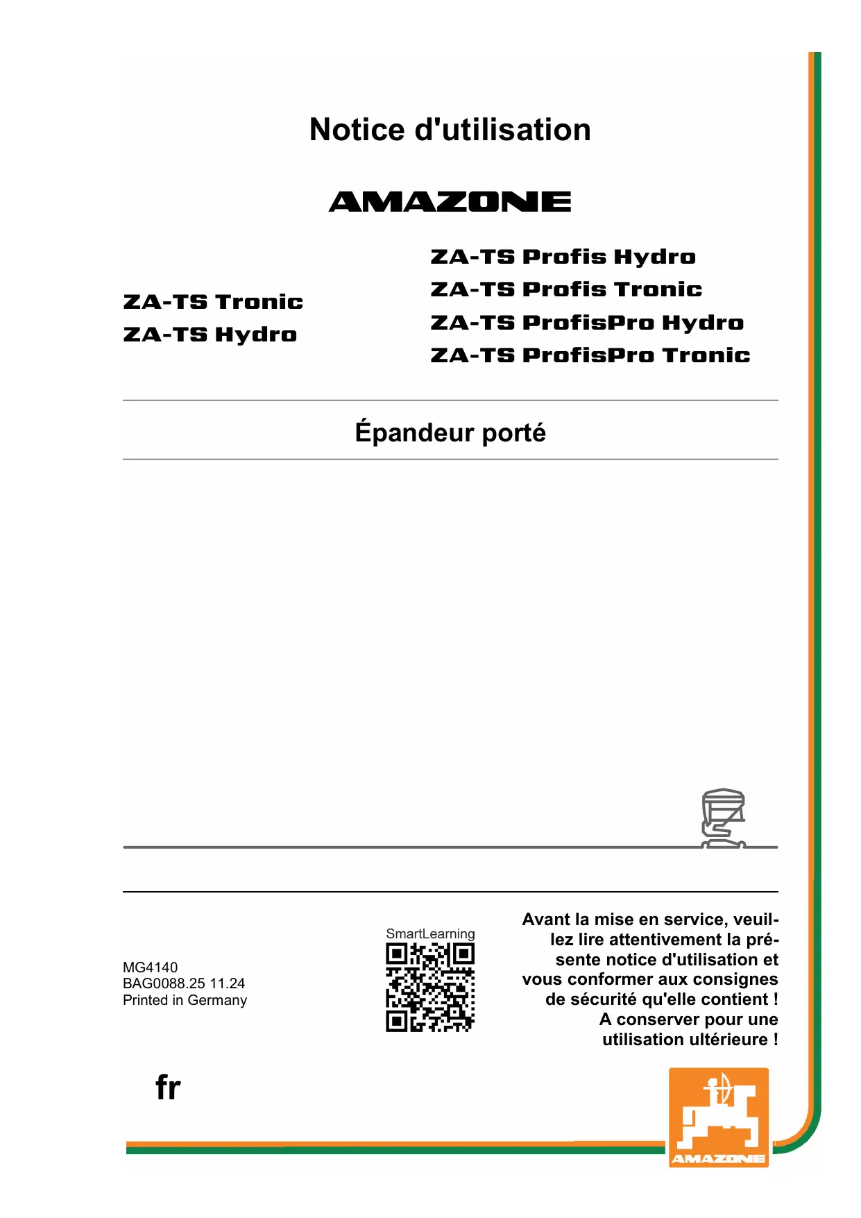 Copyright AMAZONEN-WERKE H. DREYER SE & Co. KG, 2024 Tous droits réservés. La reproduction, même partielle, est autorisée uniquement avec l'autorisation préalable de AMAZONEN-WERKE H. DREYER SE & Co. KG. ZA-TS BAG0088.25 11.24