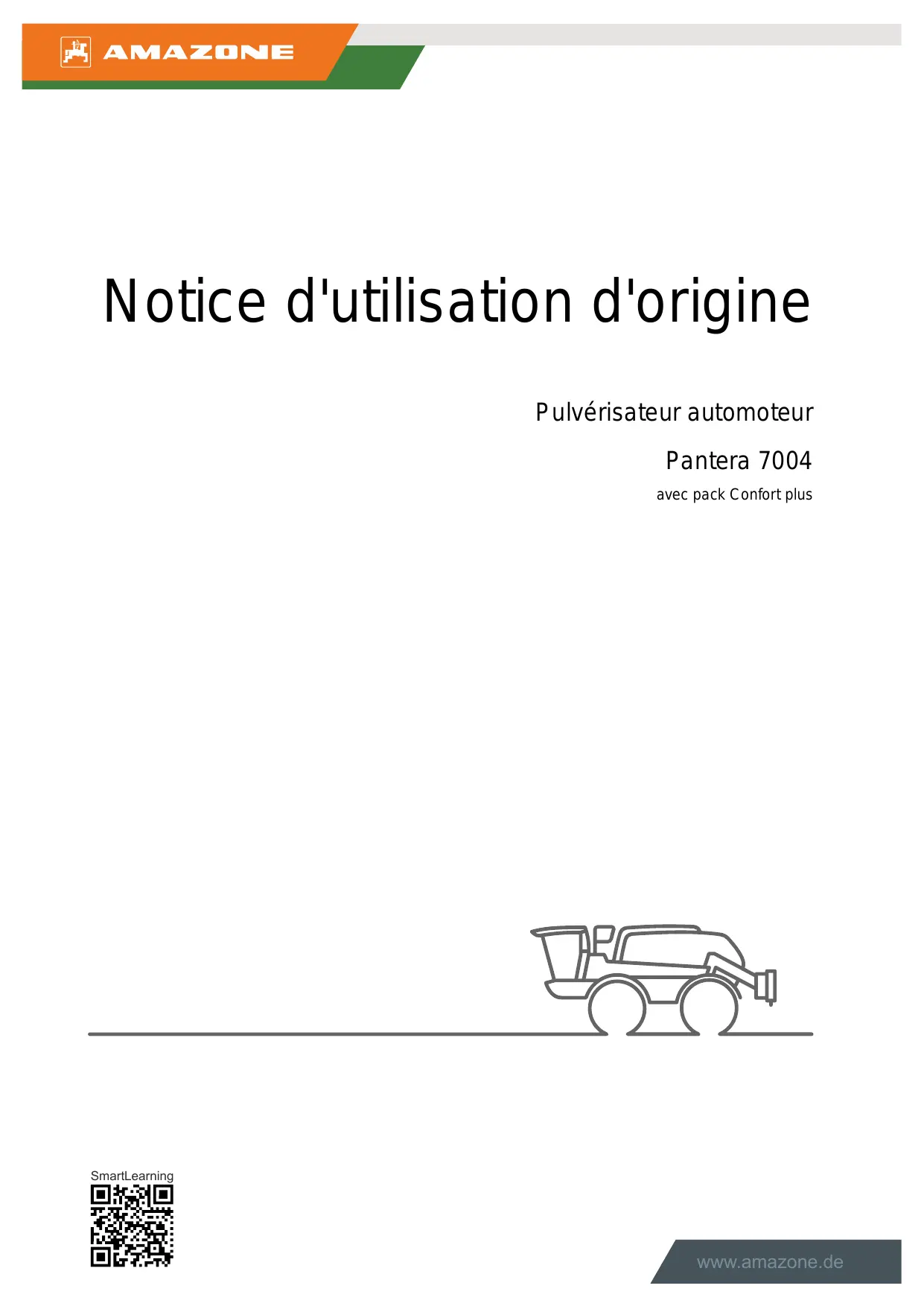Notice d'utilisation d'origine Pulvérisateur automoteur Pantera 7004 avec pack Confort plus SmartLearning www.amazone.de Veuillez reporter ici les données d'identification de la machine. Ces informations figurent sur la plaque signalétique.