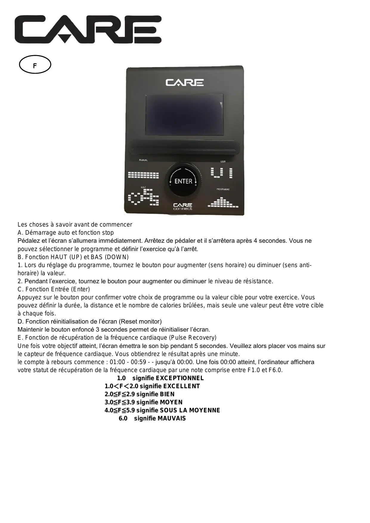 CV-395 - Vélo d'appartement CARE FITNESS - Notice d'utilisation et mode d'emploi gratuit