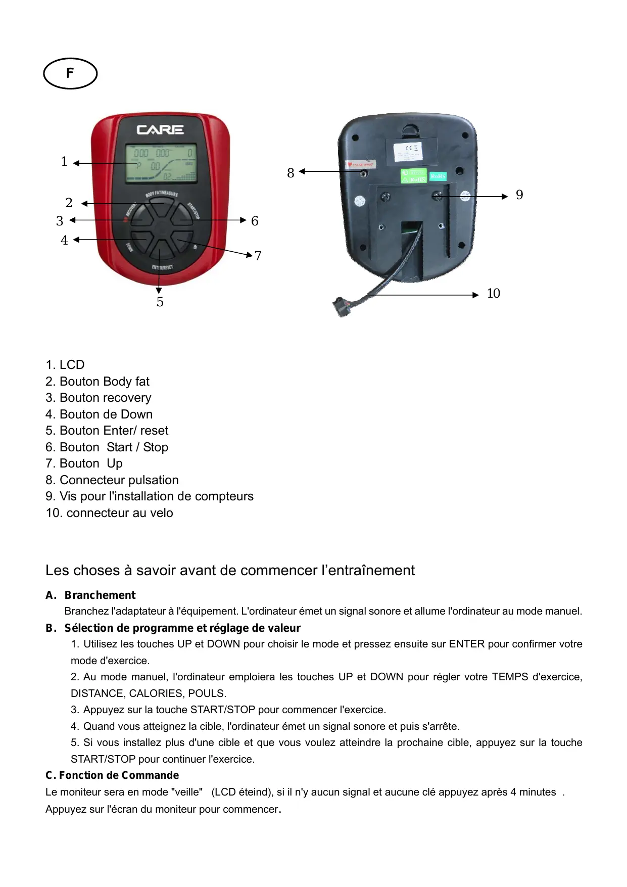 MODE D'EMPLOI CE-602 CARE FITNESS