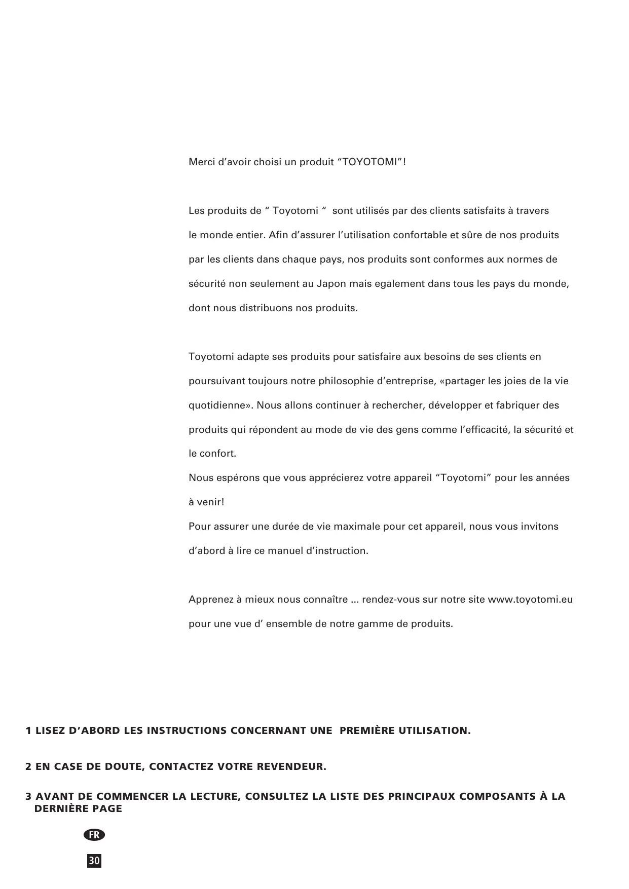 Apprenez à mieux nous connaître ... rendez-vous sur notre site www.toyotomi.eu pour une vue d’ ensemble de notre gamme de produits.