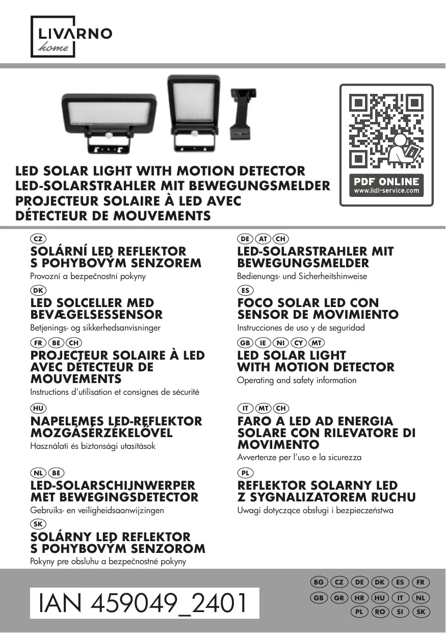 home Projecteur solaire à LED avec détecteur de mouvement - Produit de consommation LIVARNO - Notice d'utilisation et mode d'emploi gratuit